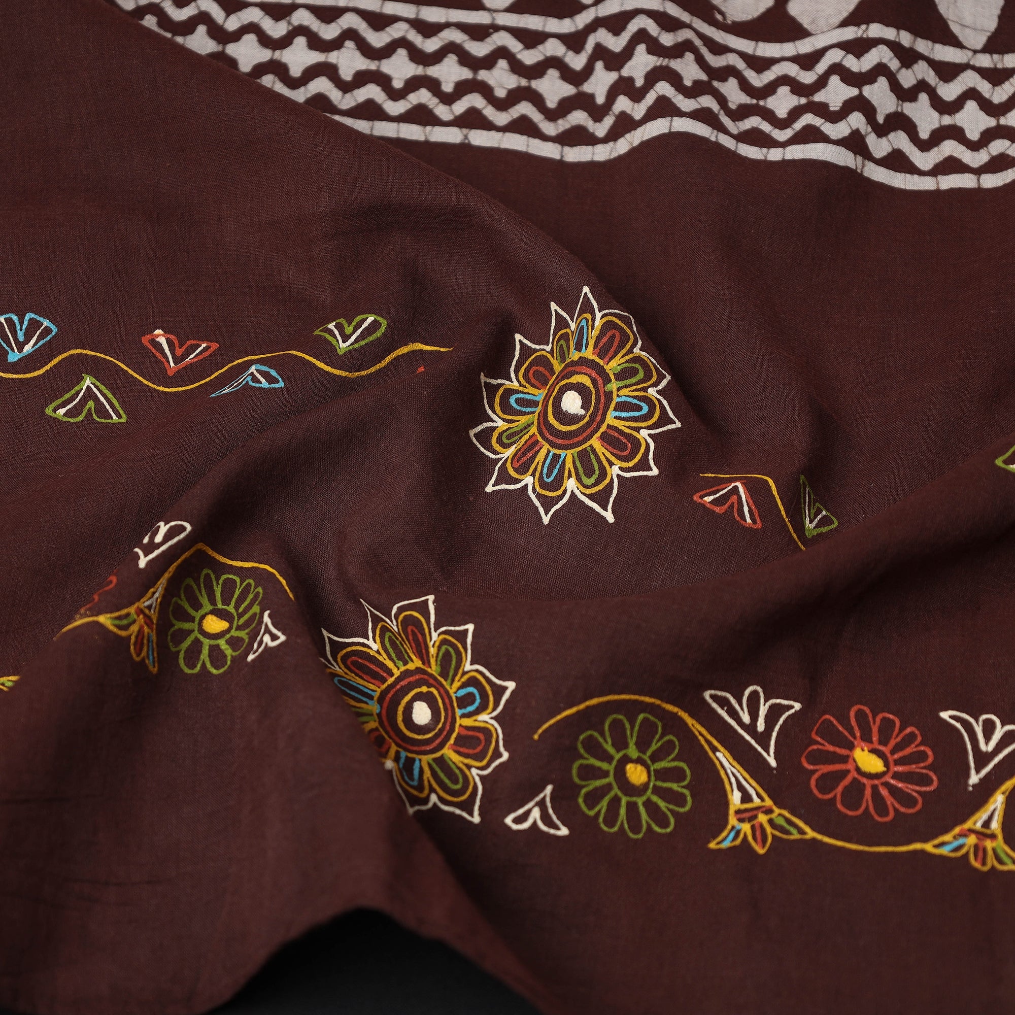 Maroon - Traditional Rogan Art Hand Painted Batik Cotton Stole