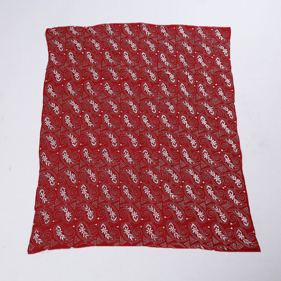 Fine quality red pure cotton handloom blouse material designed with contemporary patterns & has been hand embroidered using West Bengal's traditional craft technique of Kantha. You can get this stitched in your desired pattern and pair it up with your special sarees to complete a trendy and ethnic look.