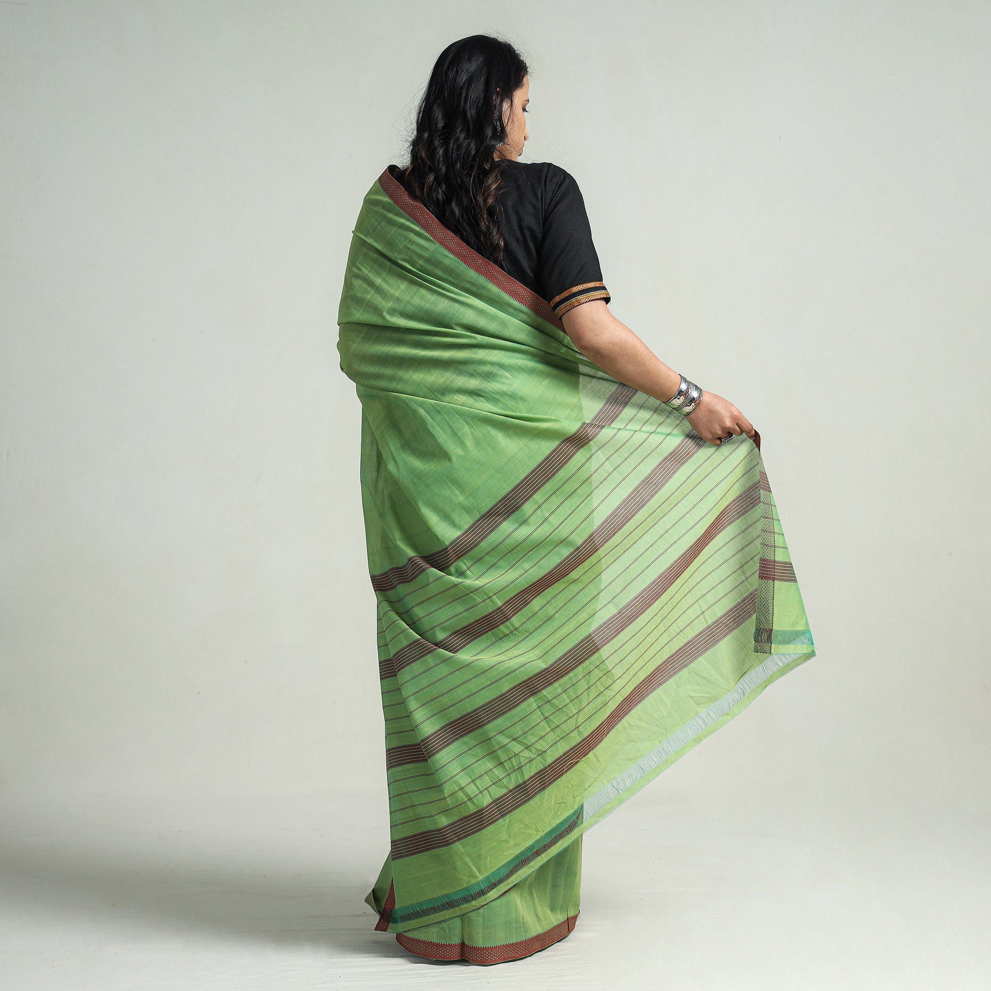 Green - Handloom Cotton Mangalagiri Fabric with Zari Border 14