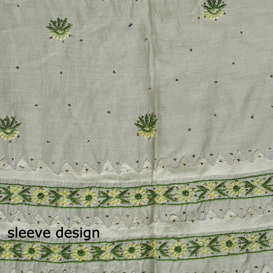 Grey - Lucknowi Chikankari Work Bandhani Unstitched Kurta Material (2.5M) 127