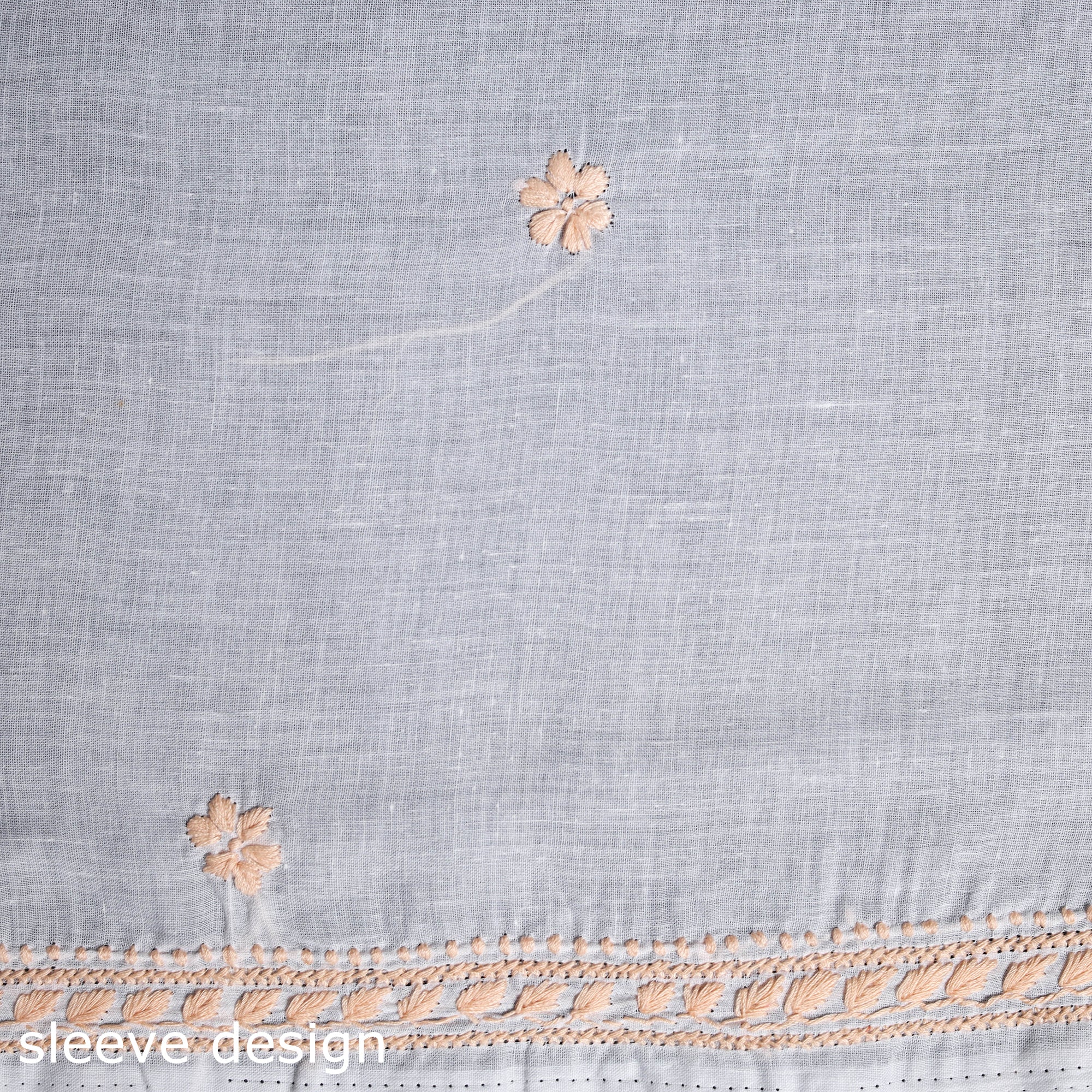 Delicate chikankari embroidery from Meharki Chikan—hand-embroidered kurtas and fabrics crafted by skilled women artisans in soft hues.