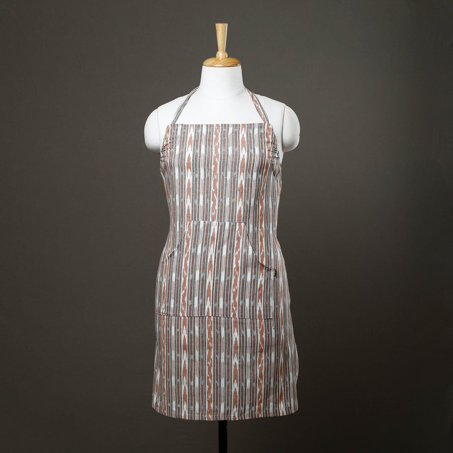 Between oil splatters, flour-covered counters, and food flying from the mixer, it's no secret that cooking can get messy. This brown pochampally ikat cotton apron with pocket for easy-access storage is a must-have kitchen essential. The gorgeous prints on it will make you look stylish when you cook delicious food. Ikat (Ikkat) is a dyeing technique used to pattern textiles that employs a resist dyeing process similar to tie-dye on either the warp or weft fibers prior to dyeing.