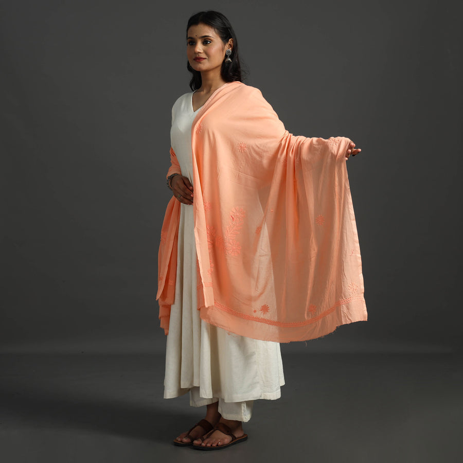 Elevate your ethnic style with our exquisite Lucknow Chikankari Hand Embroidered Cotton Dupatta. This dupatta is a masterpiece of intricate and artful chikankari hand embroidery, a traditional textile decorative art form from Lucknow. Delicate threads are meticulously embroidered on cool, pastel shades of light cotton fabric, creating a mesmerizing effect. The fine detailing and intricate stitches showcase the timeless charm of chikankari, known for its delicate beauty and craftsmanship.This cotton dupatta is perfect for adding a touch of elegance to any ethnic outfit. Whether draped over a kurta, paired with a salwar suit, it is sure to enhance your style quotient. The softness and comfort of cotton fabric make it a joy to wear, while the ethereal beauty of chikankari hand embroidery adds a touch of sophistication to your look.