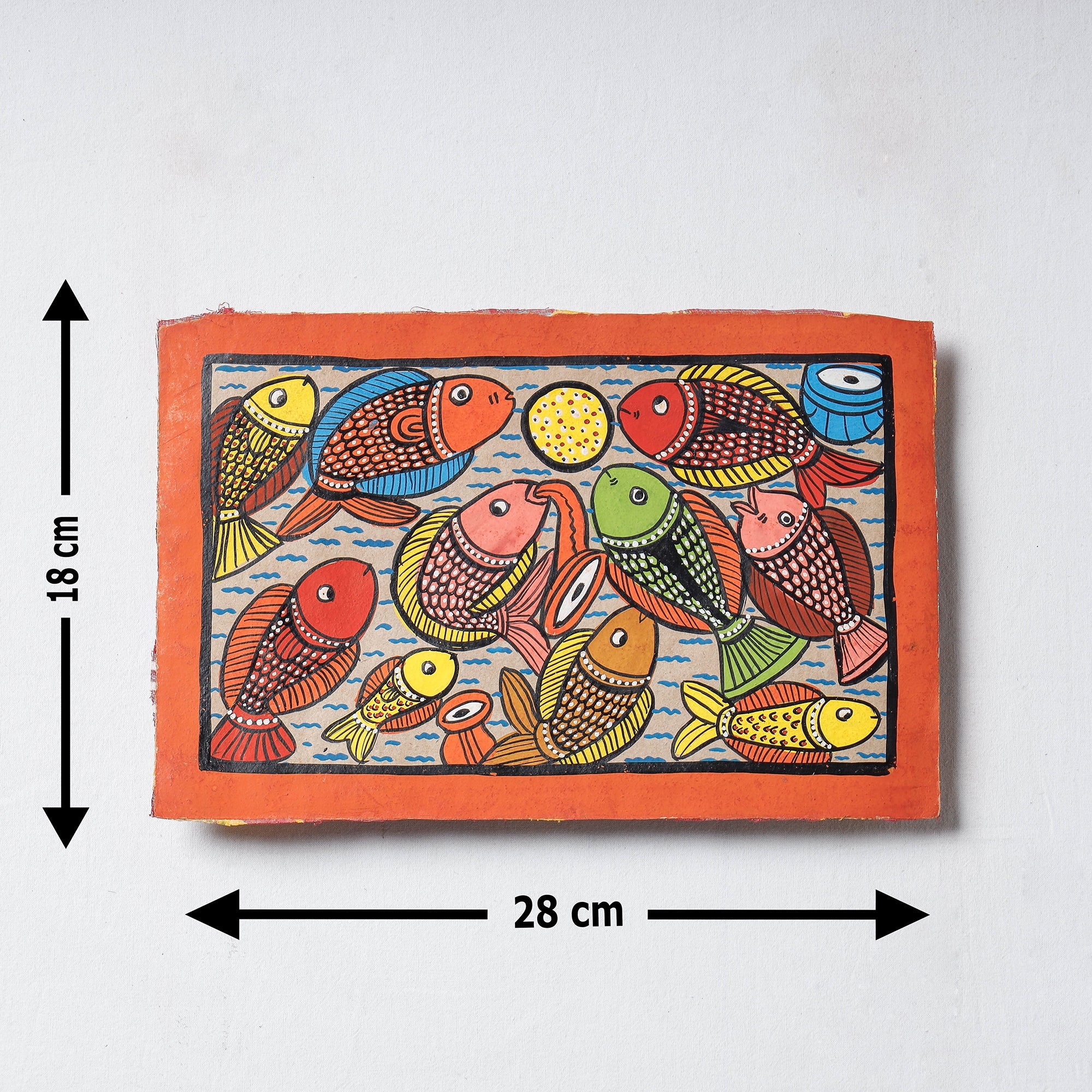 This hand-painted patua painting is a unique piece of traditional art, featuring vegetable dyes and art paper. The patua art form originated in Bengal in the 19th century near the Kali temples of Kolkata, and this piece provides a glimpse into the region's history and culture. Patuas were wandering scroll painters who settled in the area and depicted gods, goddesses, and contemporary life with a touch of humor. A perfect addition for art connoisseurs and decor enthusiasts, these paintings are priceless collectibles.