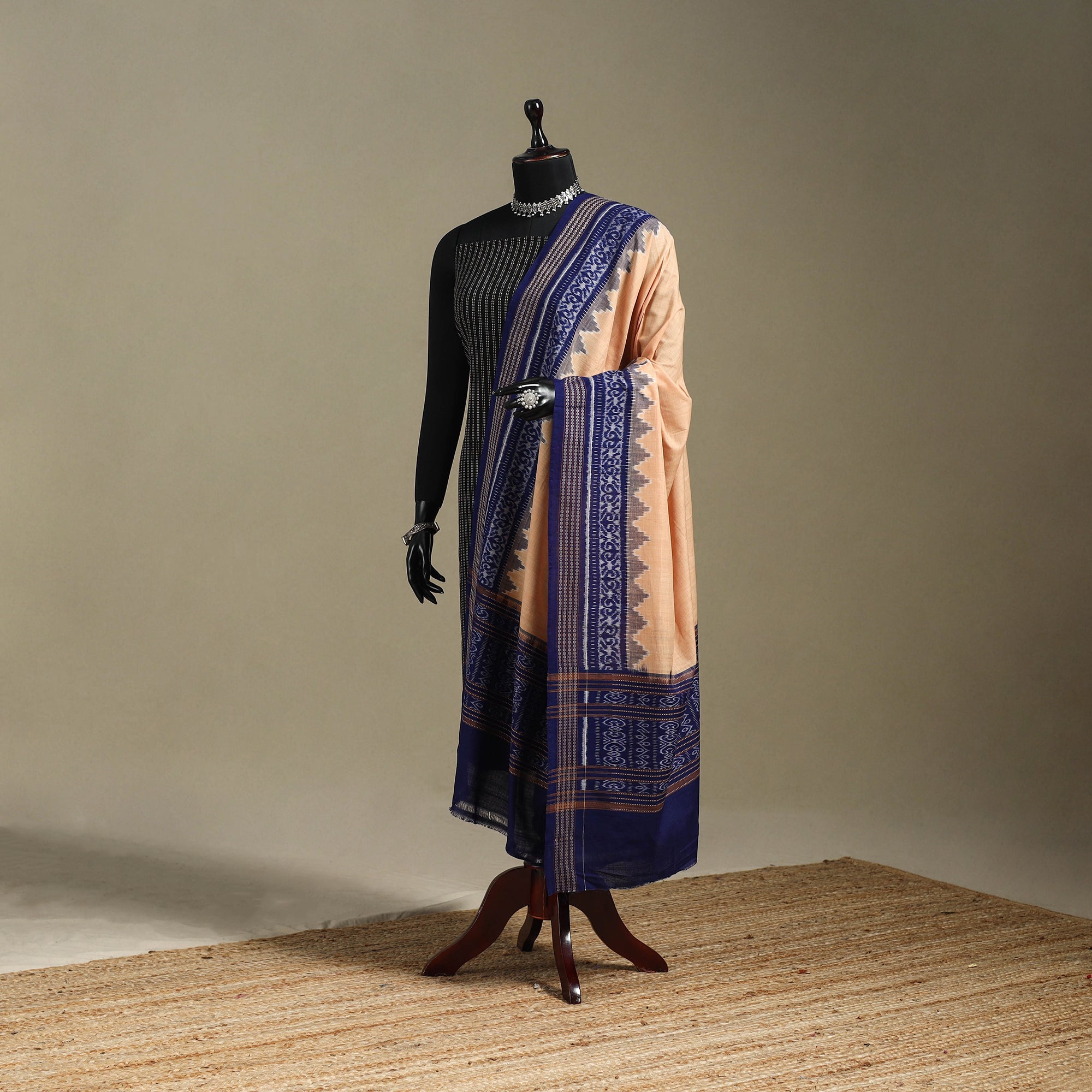 Beige sambalpuri ikat weave handloom cotton dupatta from Odisha. Handcrafted by master artisans, this dupatta showcases the artistry of eastern India. Ikat, a dyeing technique known for its stunning patterns and vibrant colors, adds a touch of elegance to this piece. Embrace the beauty of Indian ikat, cherished by fashion designers worldwide.