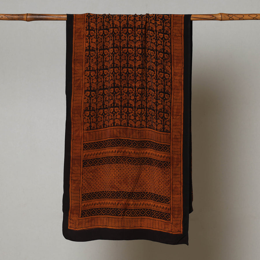 Elevate your style with the special orange bagh block printed crepe silk stole crafted by the skilled artisan Bilal Khatri. This stole is a masterpiece created using natural dyes and the traditional handblock printing technique practiced in Bagh, Madhya Pradesh. Made with exquisite attention to detail, the stole showcases the beauty of Exquisitely created with crepe silk, this classy stole spruces up the everyday look to create a lasting impact. and adds a touch of elegance to your everyday attire, leaving a lasting impression wherever you go.