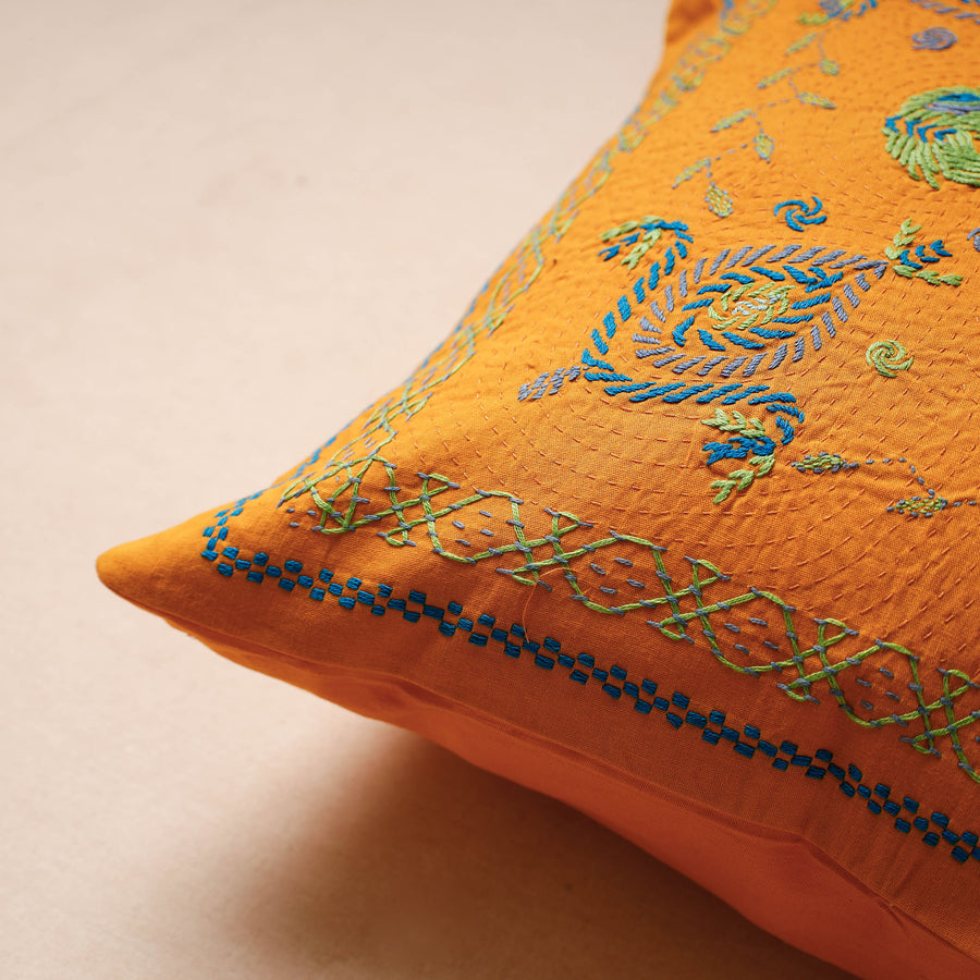 Fine quality kantha hand embroidery cushion cover made from pure mulberry silk fabric on front side and cotton fabric on backside. Designed with contemporary patterns & has been hand embroidery using West Bengal's traditional craft technique of Kantha.
