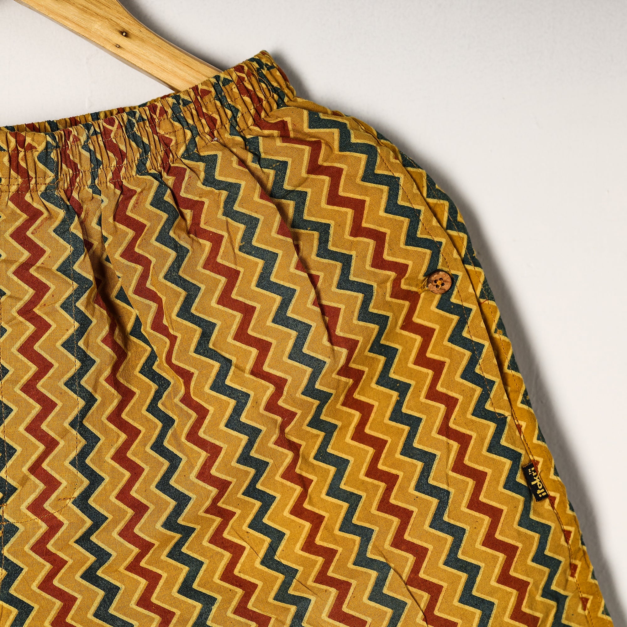 Material Composition : 100% Cotton Cotton handmade fabric with ajrakh hand block printing Ultrasoft and durable inner waistband Button placket with front fly open Side pockets with button plackets Label free for all day comfort