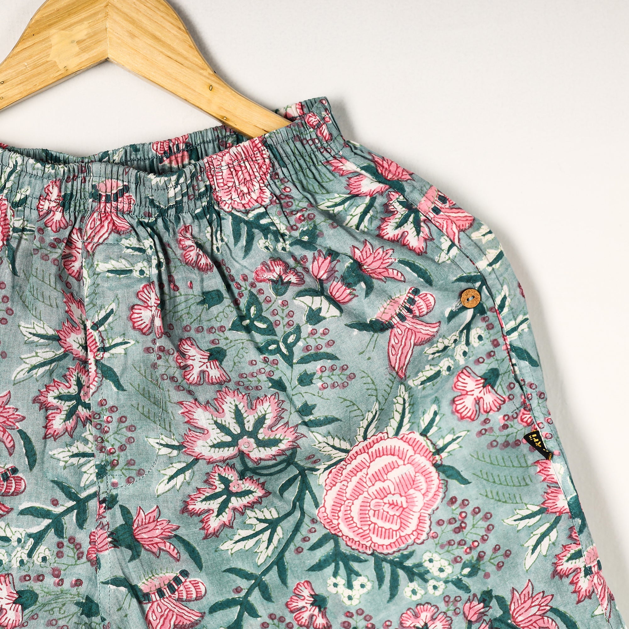 Material Composition : 100% Cotton Cotton handmade fabric with Sanganeri hand block printing Ultrasoft and durable inner waistband Button placket with front fly open Side pockets with button plackets Label free for all day comfort