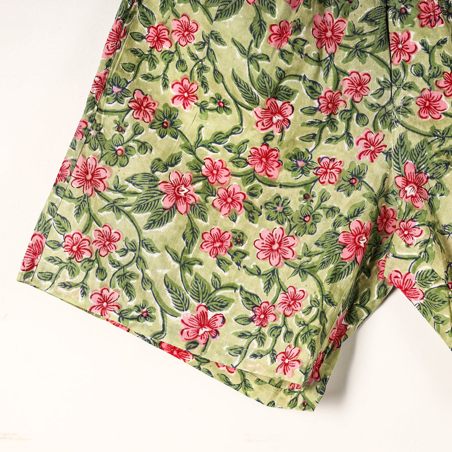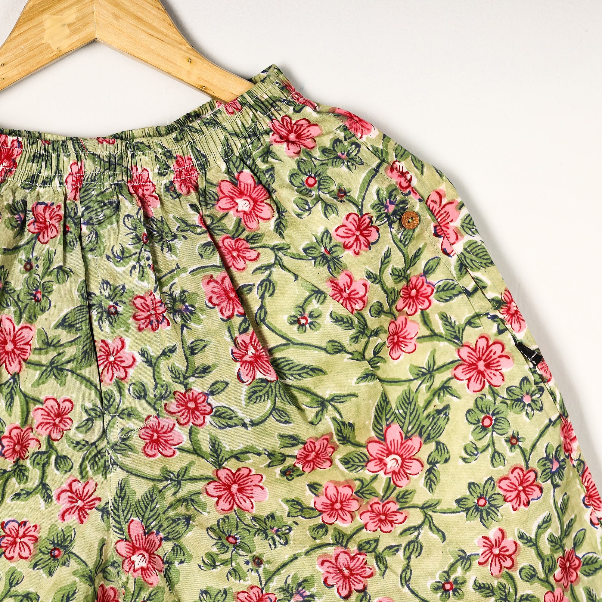 Material Composition : 100% Cotton Cotton handmade fabric with Sanganeri hand block printing Ultrasoft and durable inner waistband Button placket with front fly open Side pockets with button plackets Label free for all day comfort