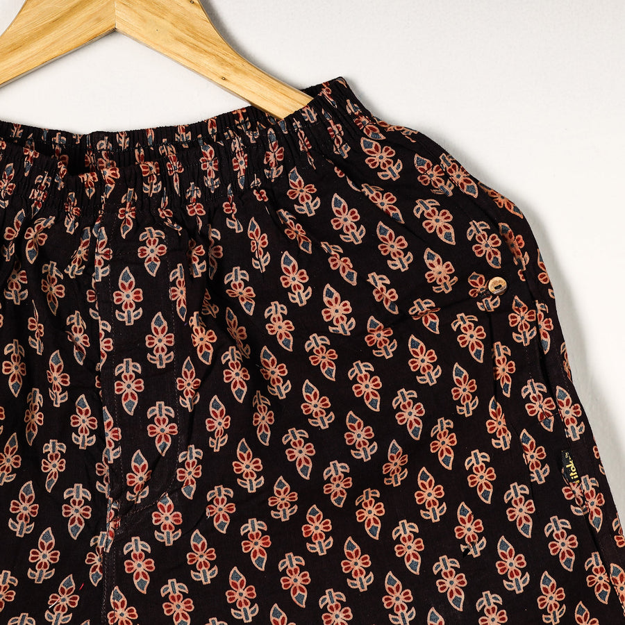 Material Composition : 100% Cotton Cotton handmade fabric with ajrakh hand block printing Ultrasoft and durable inner waistband Button placket with front fly open Side pockets with button plackets Label free for all day comfort