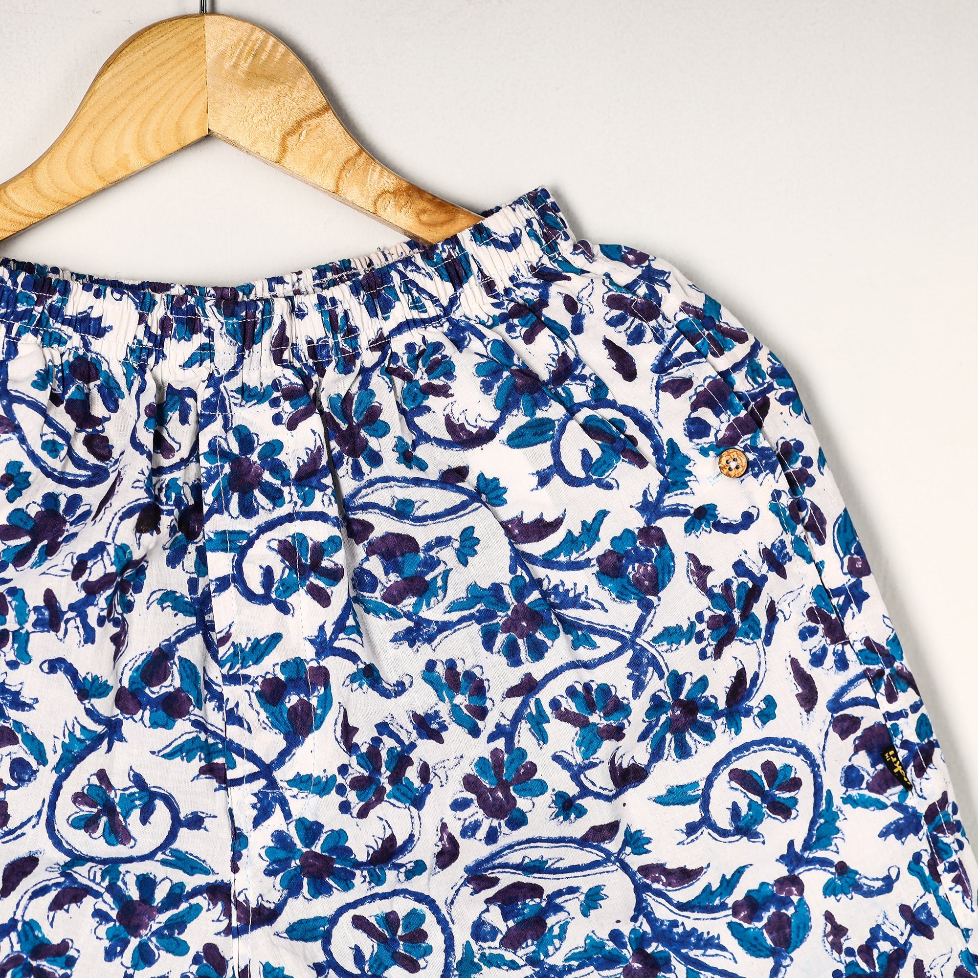 Material Composition : 100% Cotton Cotton handmade fabric with Sanganeri hand block printing Ultrasoft and durable inner waistband Button placket with front fly open Side pockets with button plackets Label free for all day comfort