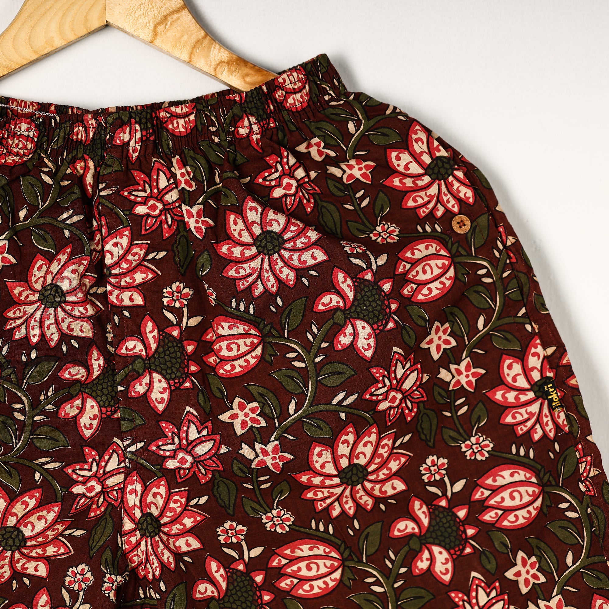 Material Composition : 100% Cotton Cotton handmade fabric with Sanganeri hand block printing Ultrasoft and durable inner waistband Button placket with front fly open Side pockets with button plackets Label free for all day comfort