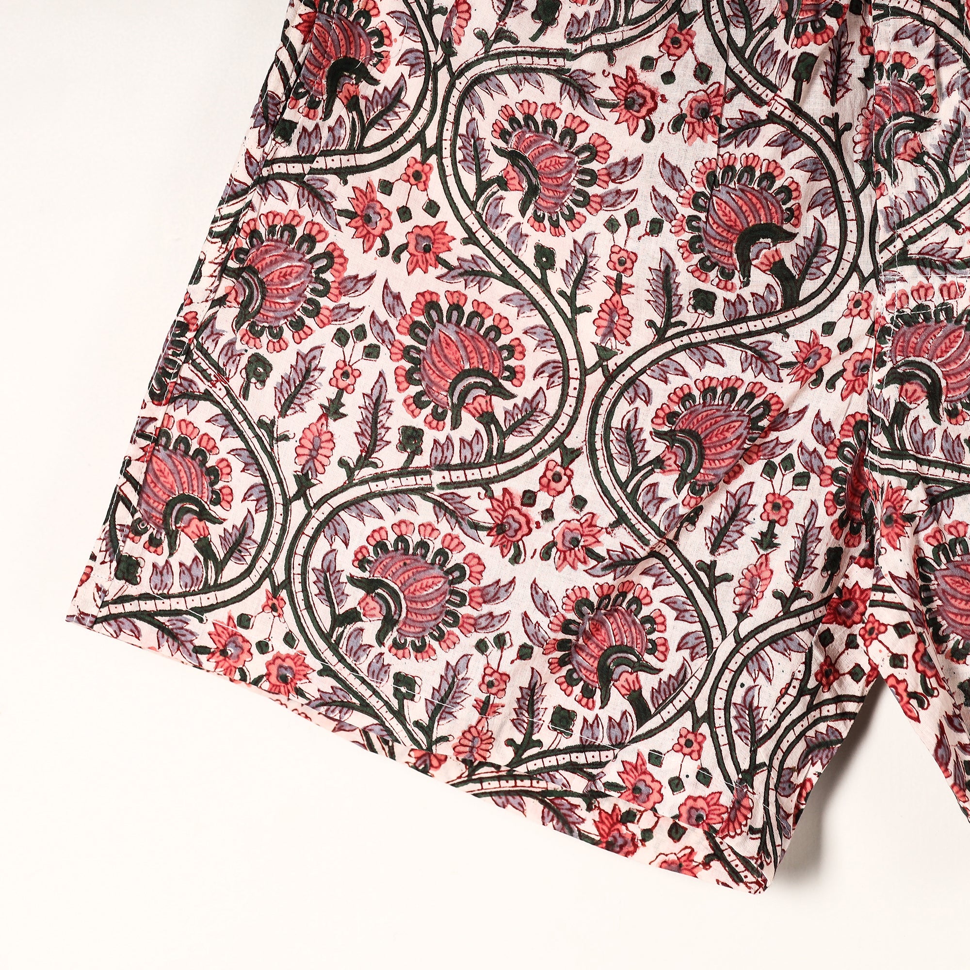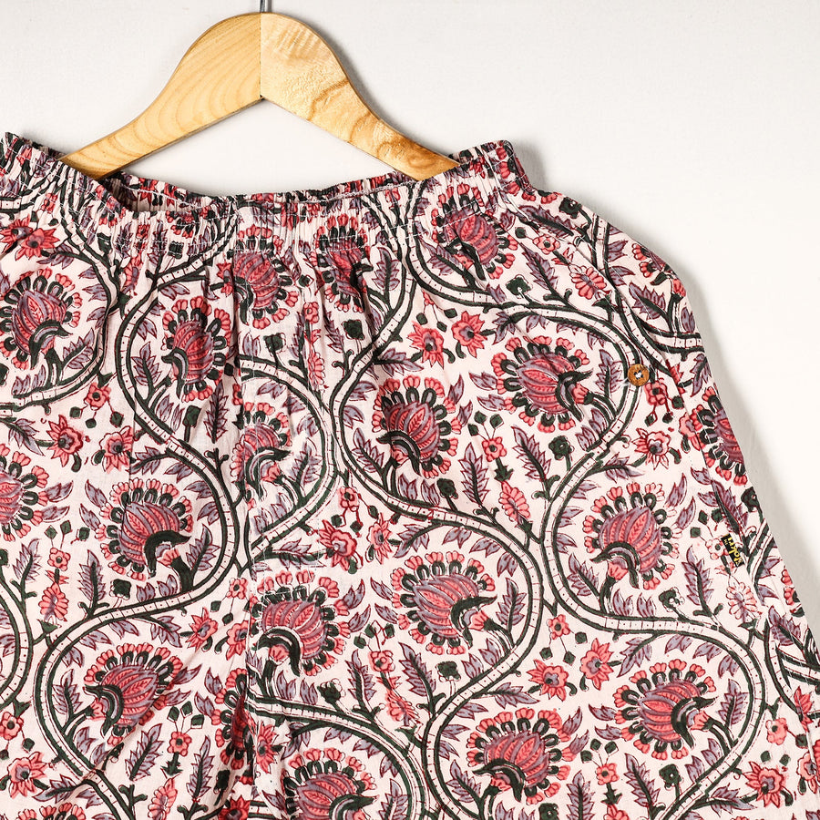 Material Composition : 100% Cotton Cotton handmade fabric with Sanganeri hand block printing Ultrasoft and durable inner waistband Button placket with front fly open Side pockets with button plackets Label free for all day comfort
