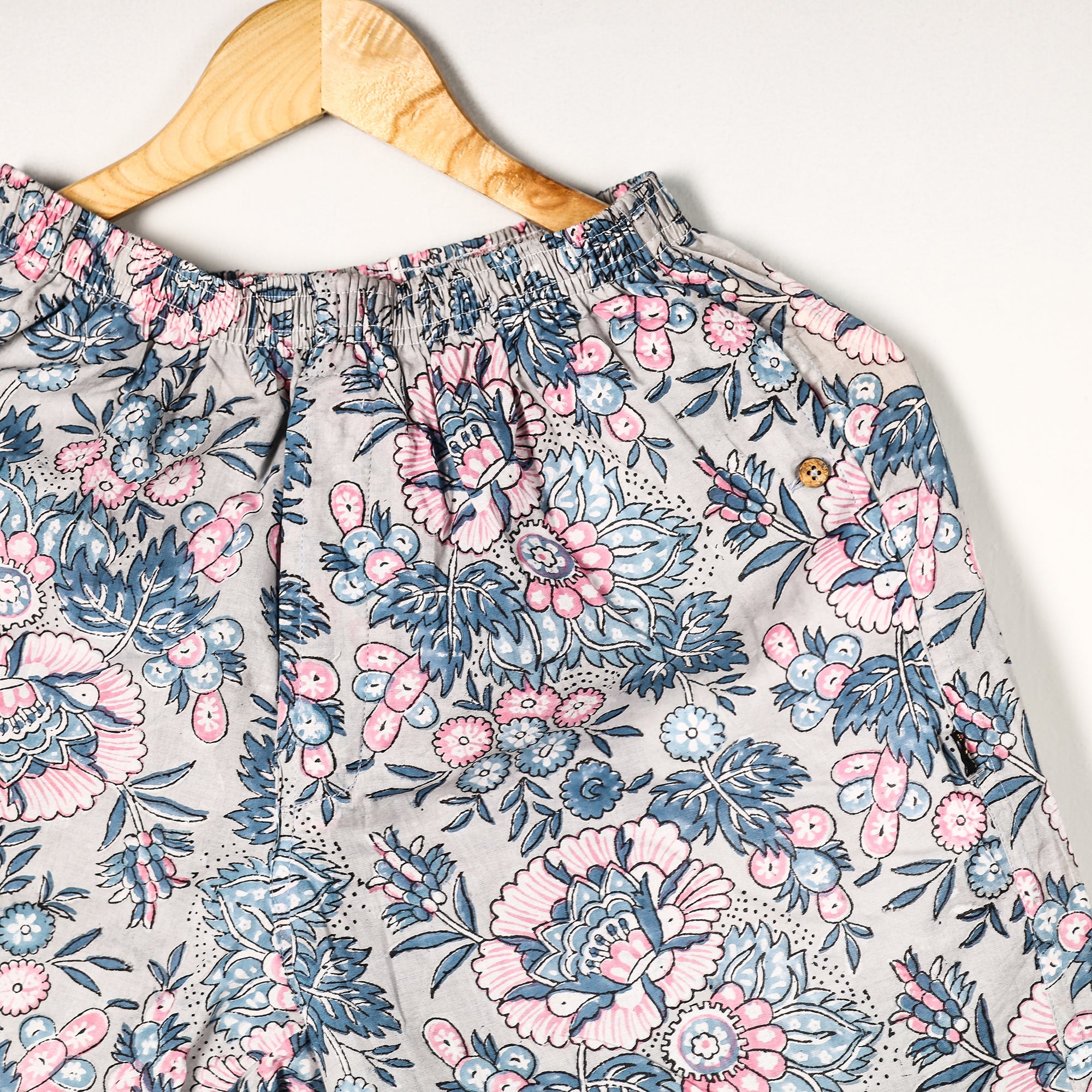 Material Composition : 100% Cotton Cotton handmade fabric with Sanganeri hand block printing Ultrasoft and durable inner waistband Button placket with front fly open Side pockets with button plackets Label free for all day comfort