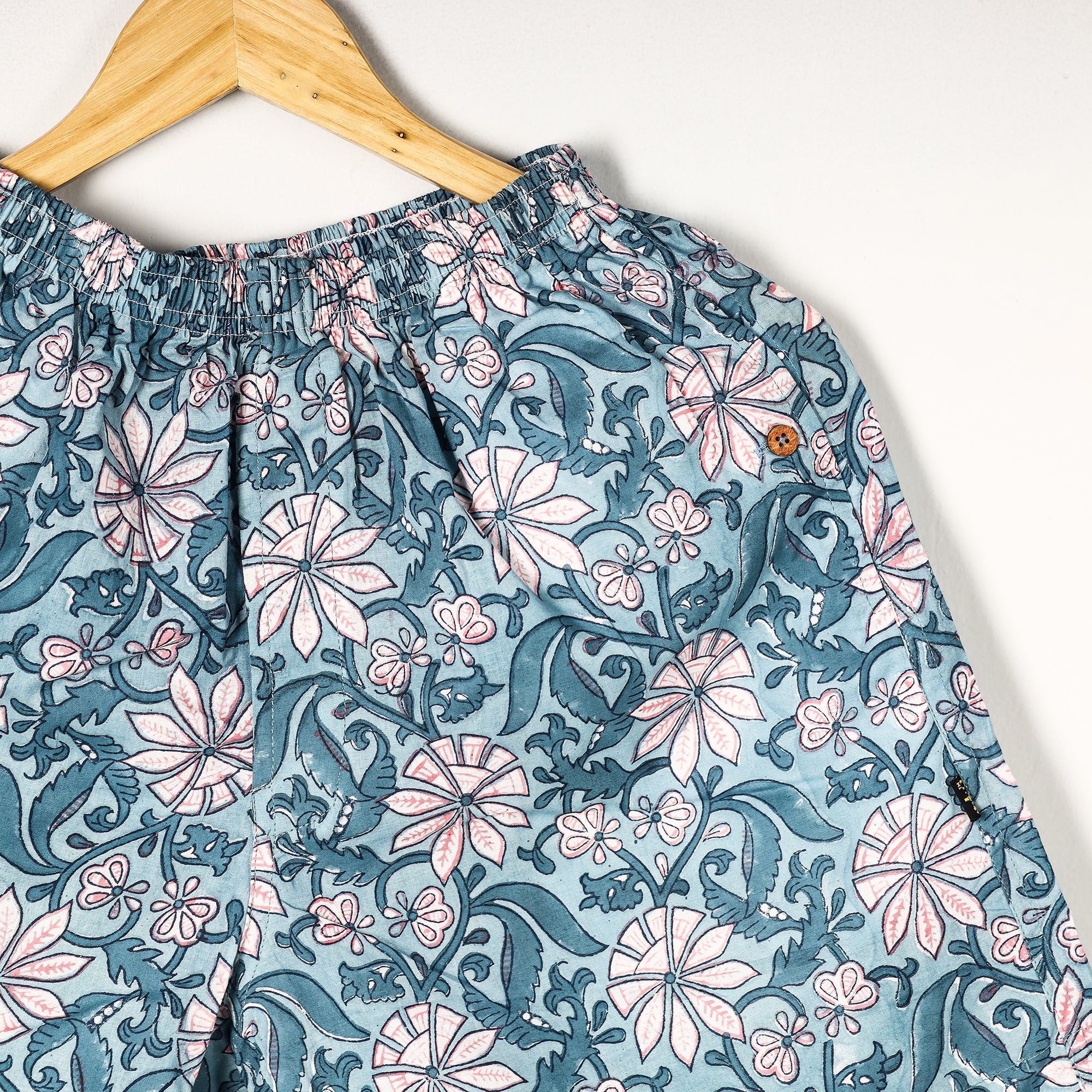 Cotton handmade fabric with Sanganeri hand block printing Ultrasoft and durable inner waistband Button placket with front fly open Side pockets with button plackets Label free for all day comfort Style with these alluring motif boxers that make you look attractive, these boxers will make valuable additions to your casual wear collection.