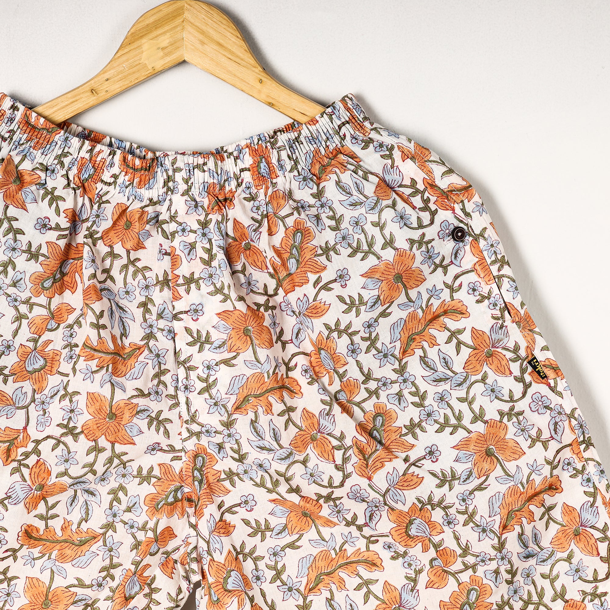 Material Composition : 100% Cotton Cotton handmade fabric with Sanganeri hand block printing Ultrasoft and durable inner waistband Button placket with front fly open Side pockets with button plackets Label free for all day comfort
