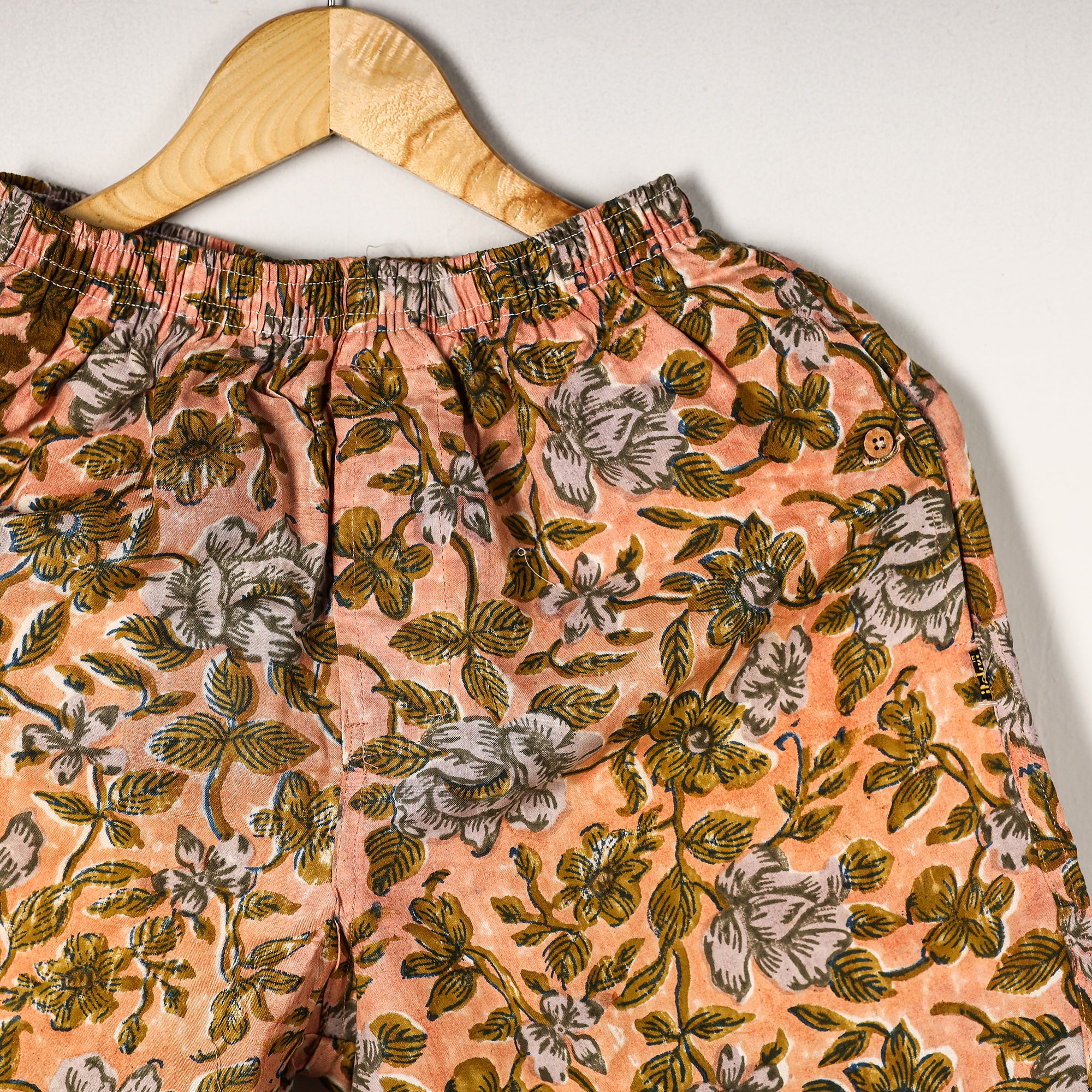 Material Composition : 100% Cotton Cotton handmade fabric with Sanganeri hand block printing Ultrasoft and durable inner waistband Button placket with front fly open Side pockets with button plackets Label free for all day comfort