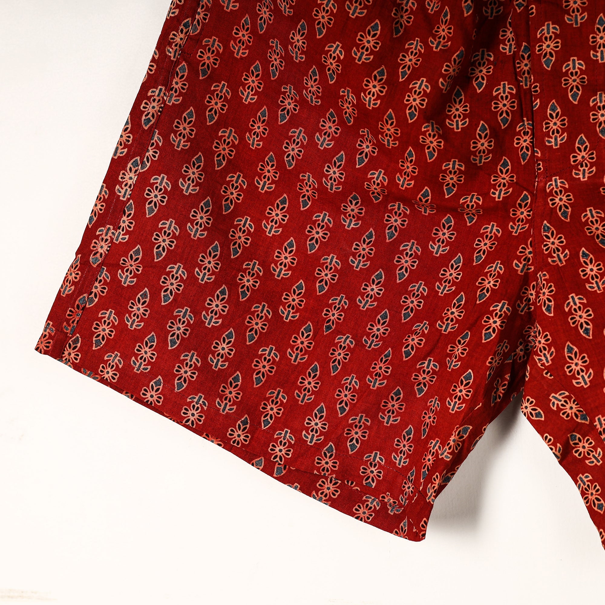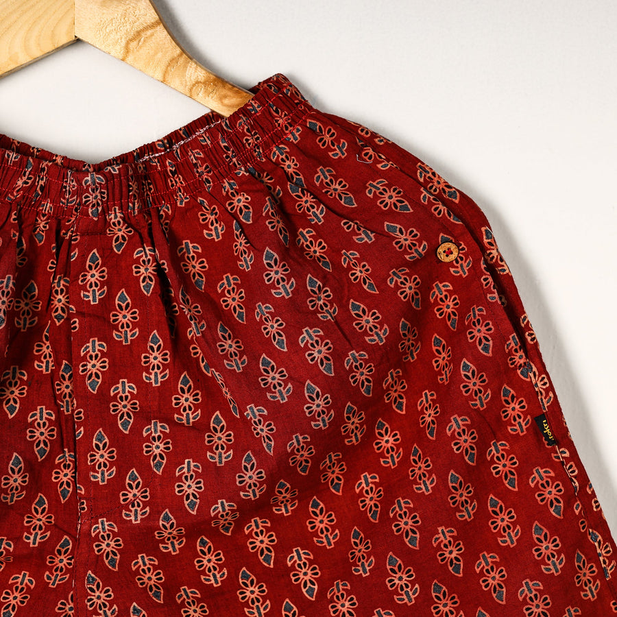 Material Composition : 100% Cotton Cotton handmade fabric with ajrakh hand block printing Ultrasoft and durable inner waistband Button placket with front fly open Side pockets with button plackets Label free for all day comfort