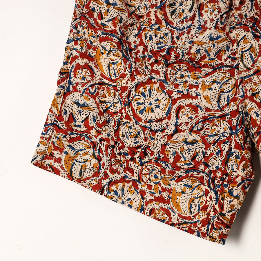 Material Composition : 100% Cotton Cotton handmade fabric with kalamkari hand block printing Ultrasoft and durable inner waistband Button placket with front fly open Side pockets with button plackets Label free for all day comfort