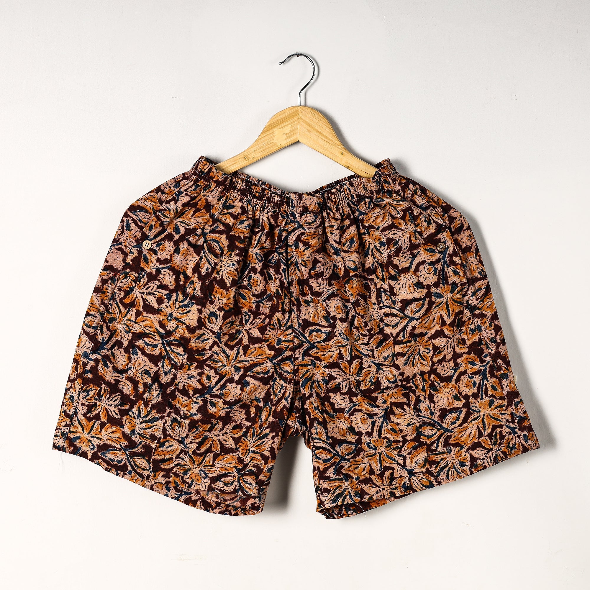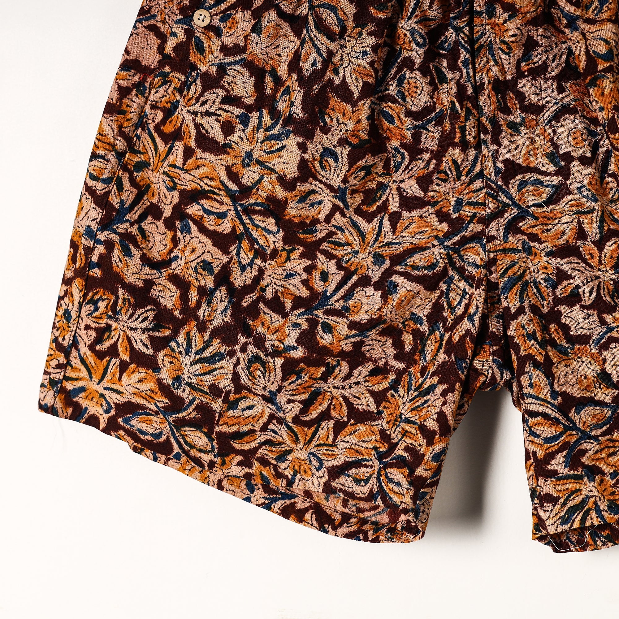 Material Composition : 100% Cotton Cotton handmade fabric with kalamkari hand block printing Ultrasoft and durable inner waistband Button placket with front fly open Side pockets with button plackets Label free for all day comfort
