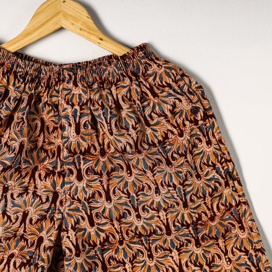 Material Composition : 100% Cotton Cotton handmade fabric with kalamkari hand block printing Ultrasoft and durable inner waistband Button placket with front fly open Side pockets with button plackets Label free for all day comfort