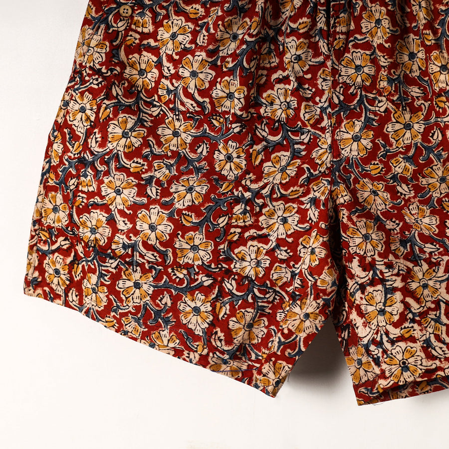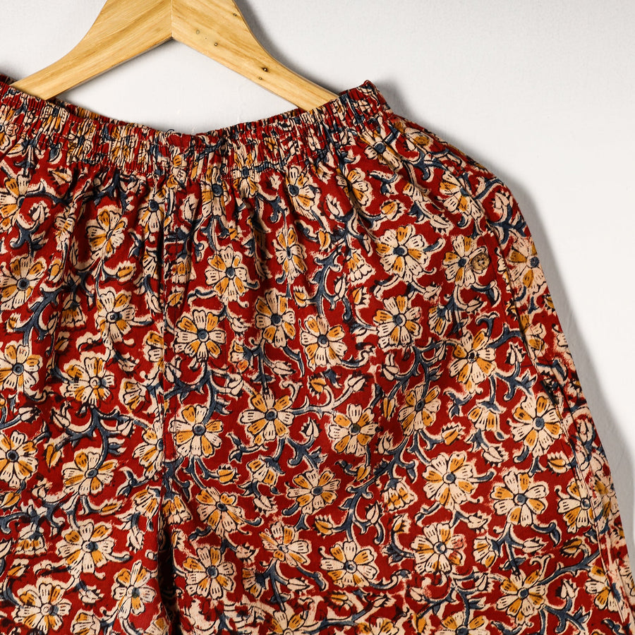 Material Composition : 100% Cotton Cotton handmade fabric with kalamkari hand block printing Ultrasoft and durable inner waistband Button placket with front fly open Side pockets with button plackets Label free for all day comfort