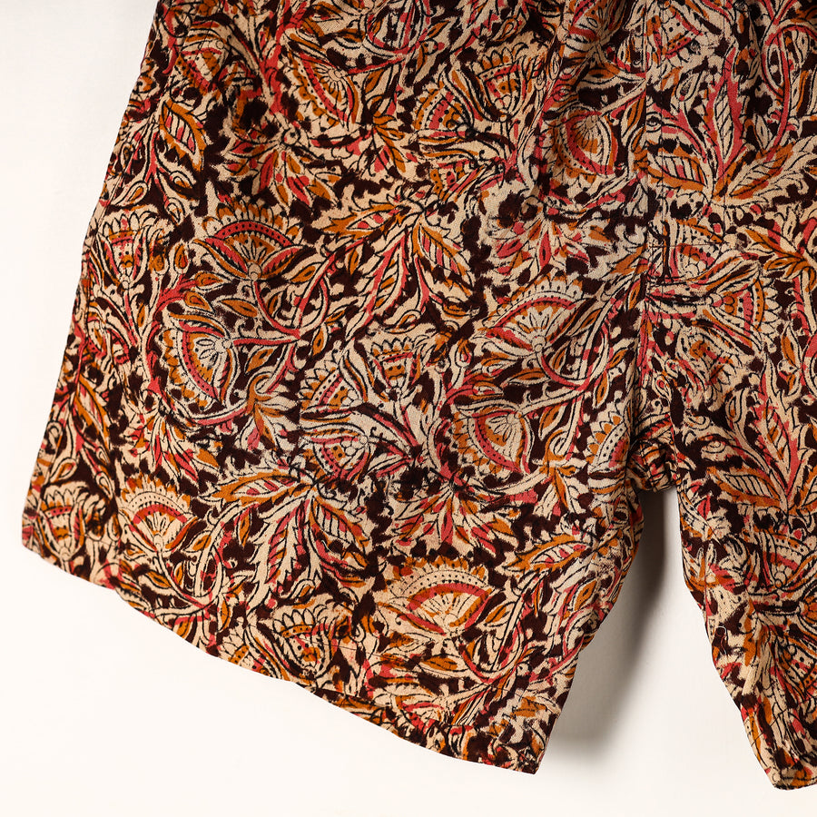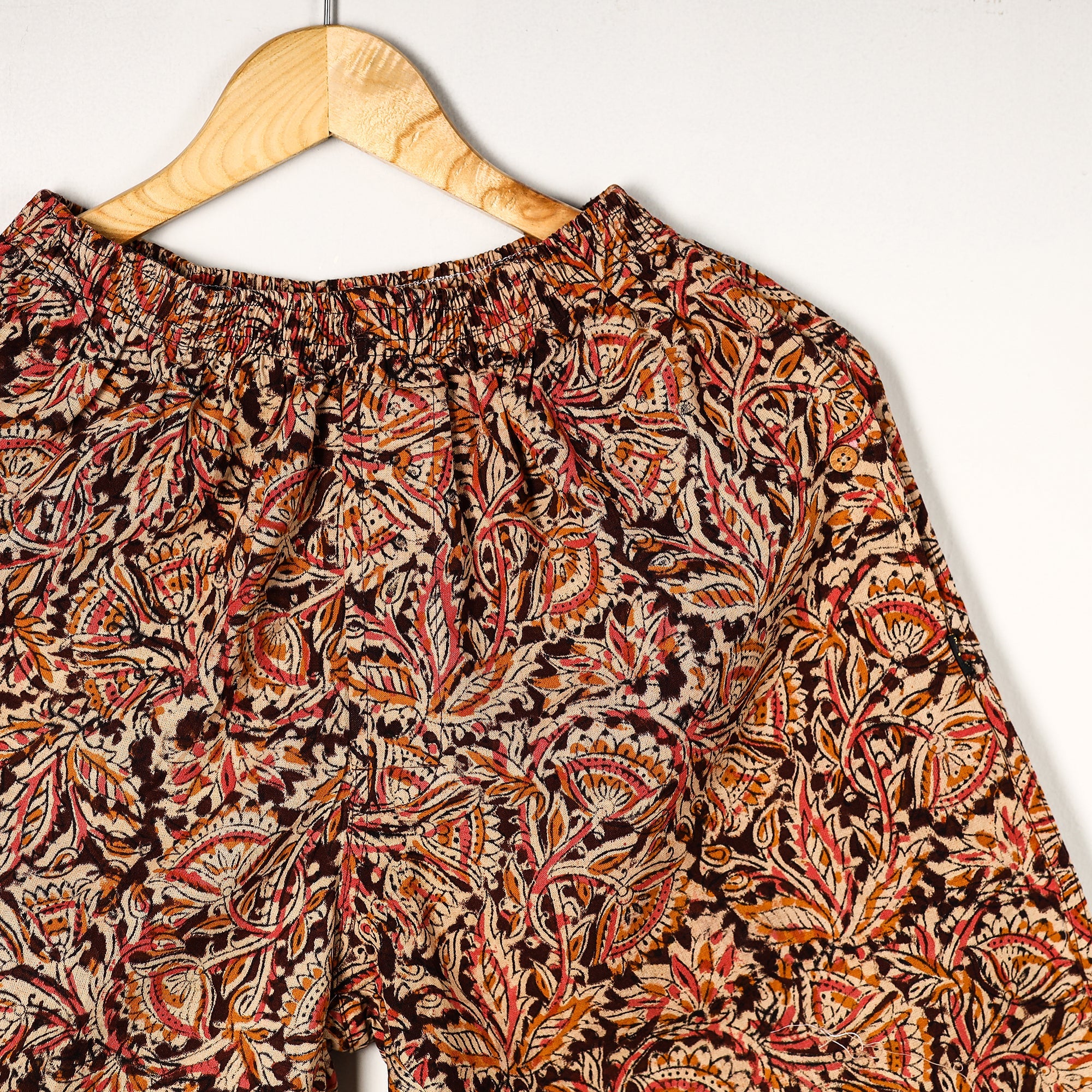 Material Composition : 100% Cotton Cotton handmade fabric with kalamkari hand block printing Ultrasoft and durable inner waistband Button placket with front fly open Side pockets with button plackets Label free for all day comfort