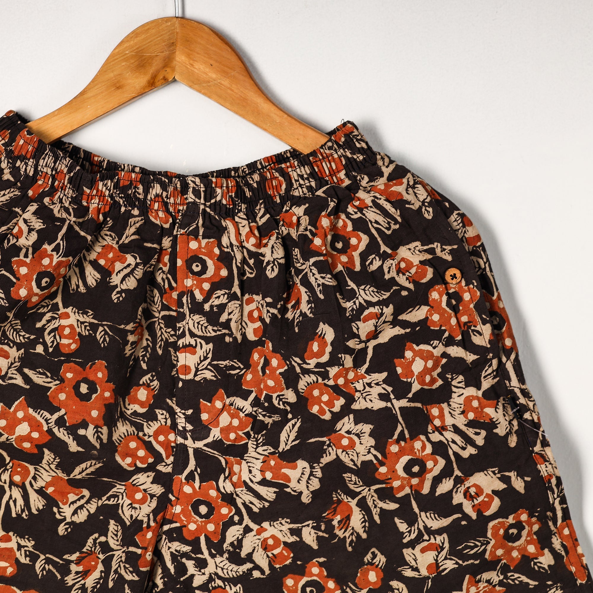 Material Composition : 100% Cotton Cotton handmade fabric with bagru block printing Ultrasoft and durable inner waistband Button placket with front fly open Side pockets with button plackets Label free for all day comfort
