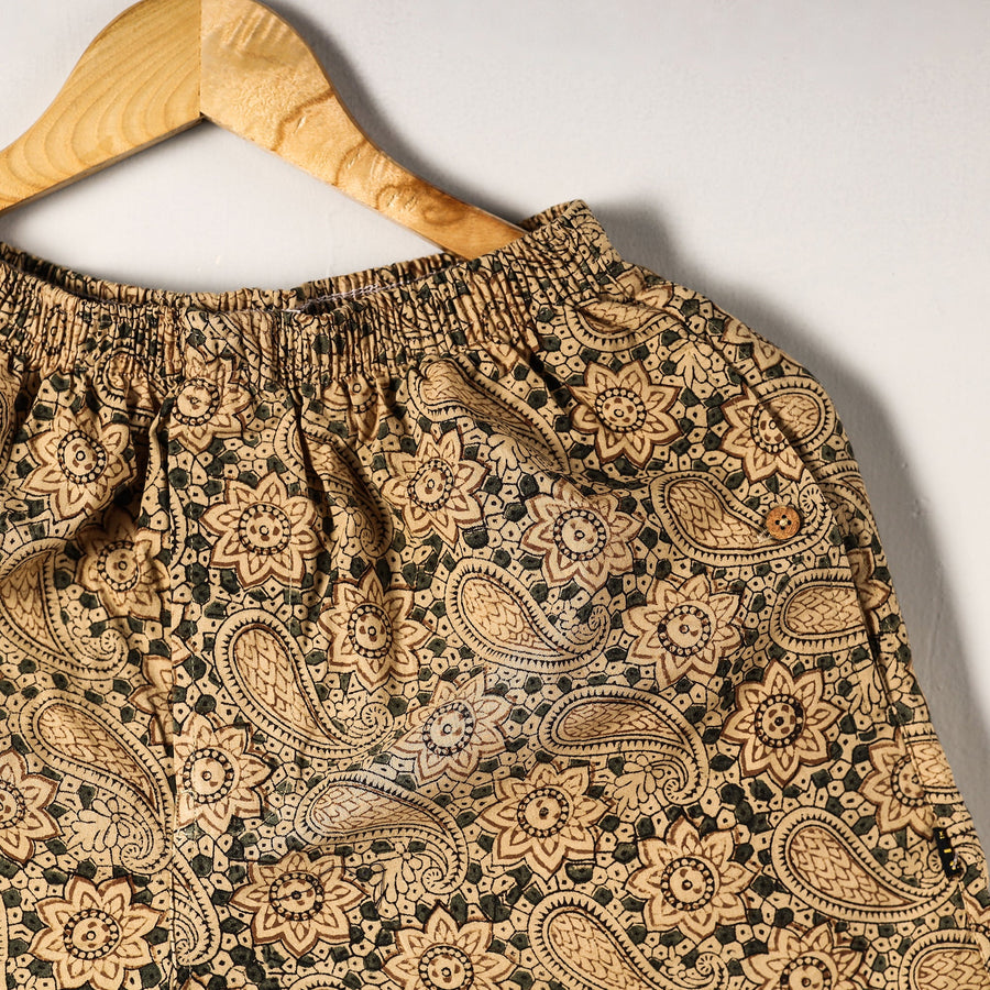 Material Composition : 100% Cotton Cotton handmade fabric with kalamkari hand block printing Ultrasoft and durable inner waistband Button placket with front fly open Side pockets with button plackets Label free for all day comfort