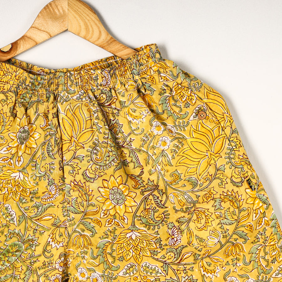 Material Composition : 100% Cotton Cotton handmade fabric with Sanganeri hand block printing Ultrasoft and durable inner waistband Button placket with front fly open Side pockets with button plackets Label free for all day comfort