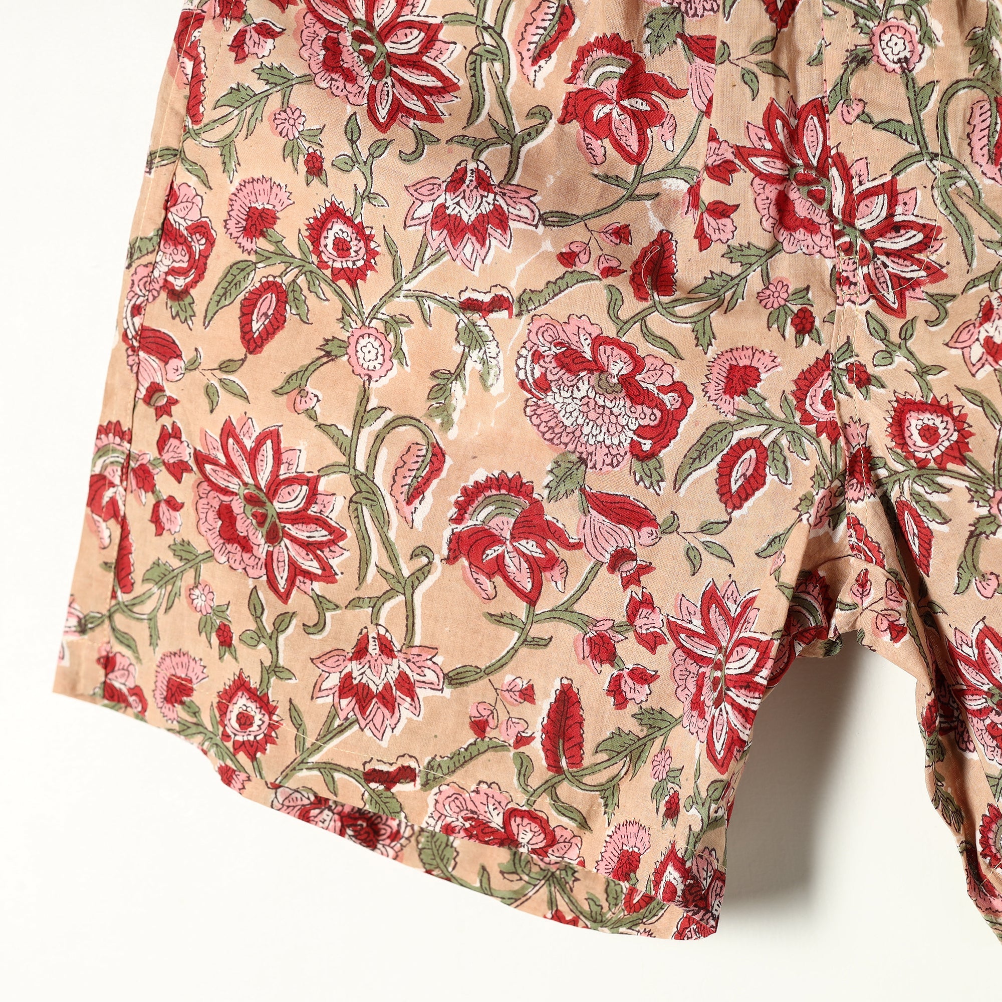 Material Composition : 100% Cotton Cotton handmade fabric with beige Sanganeri hand block printing Ultrasoft and durable inner waistband Button placket with front fly open Side pockets with button plackets Label free for all day comfort
