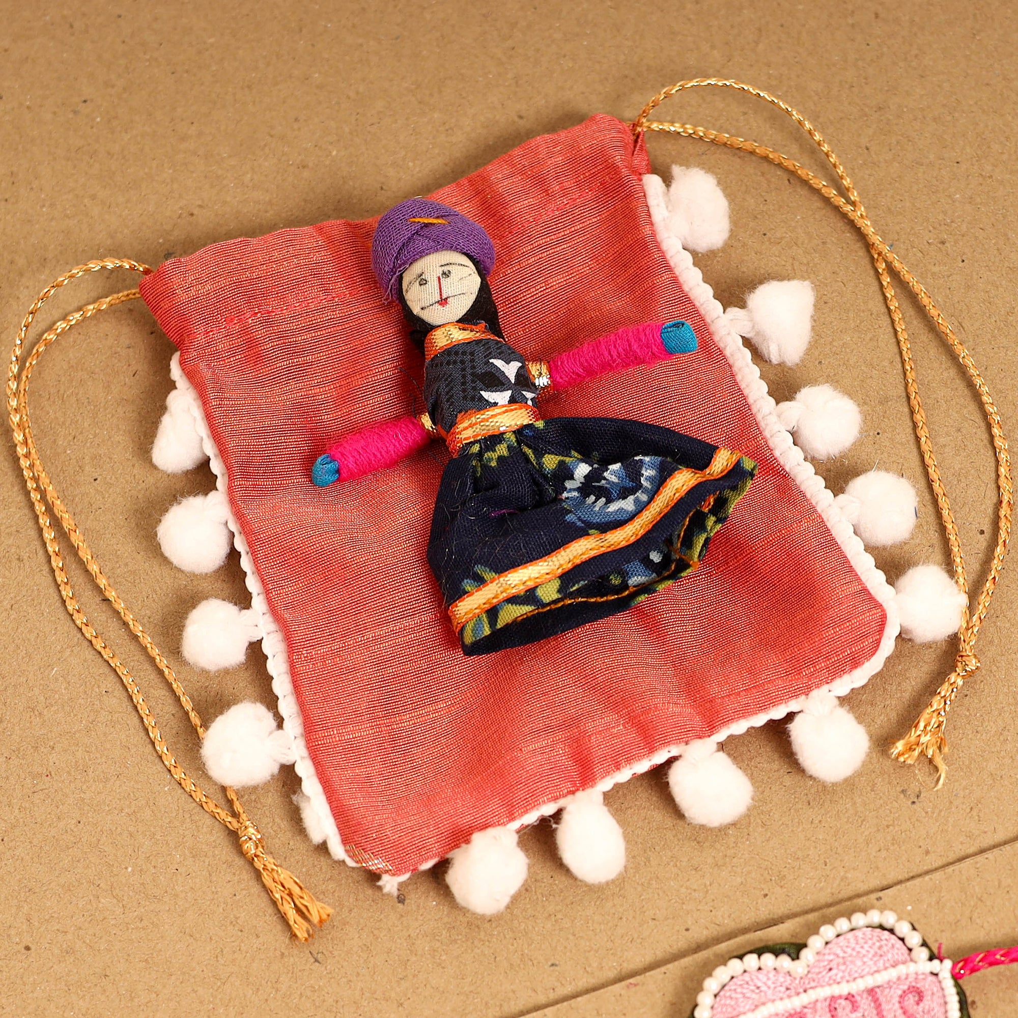 Colorful glass beads & thread work rakhi handcrafted for the very special khatta meetha bond between brother and sister. This Rakhi will come with a potli for added charm. Bursting with vibrant colours and crafted with love, this unique piece symbolizes the joyous connection between a brother and sister.