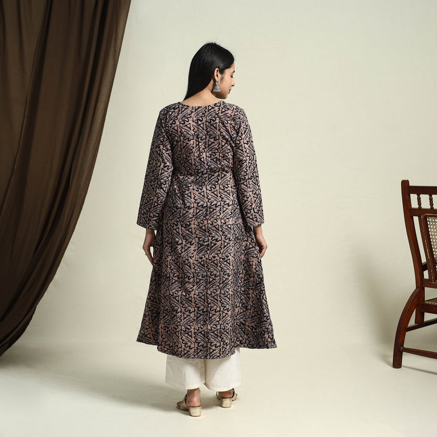 Beige - Cotton Hand Block Batik Print Embroidered A-Line Kurta for women 06