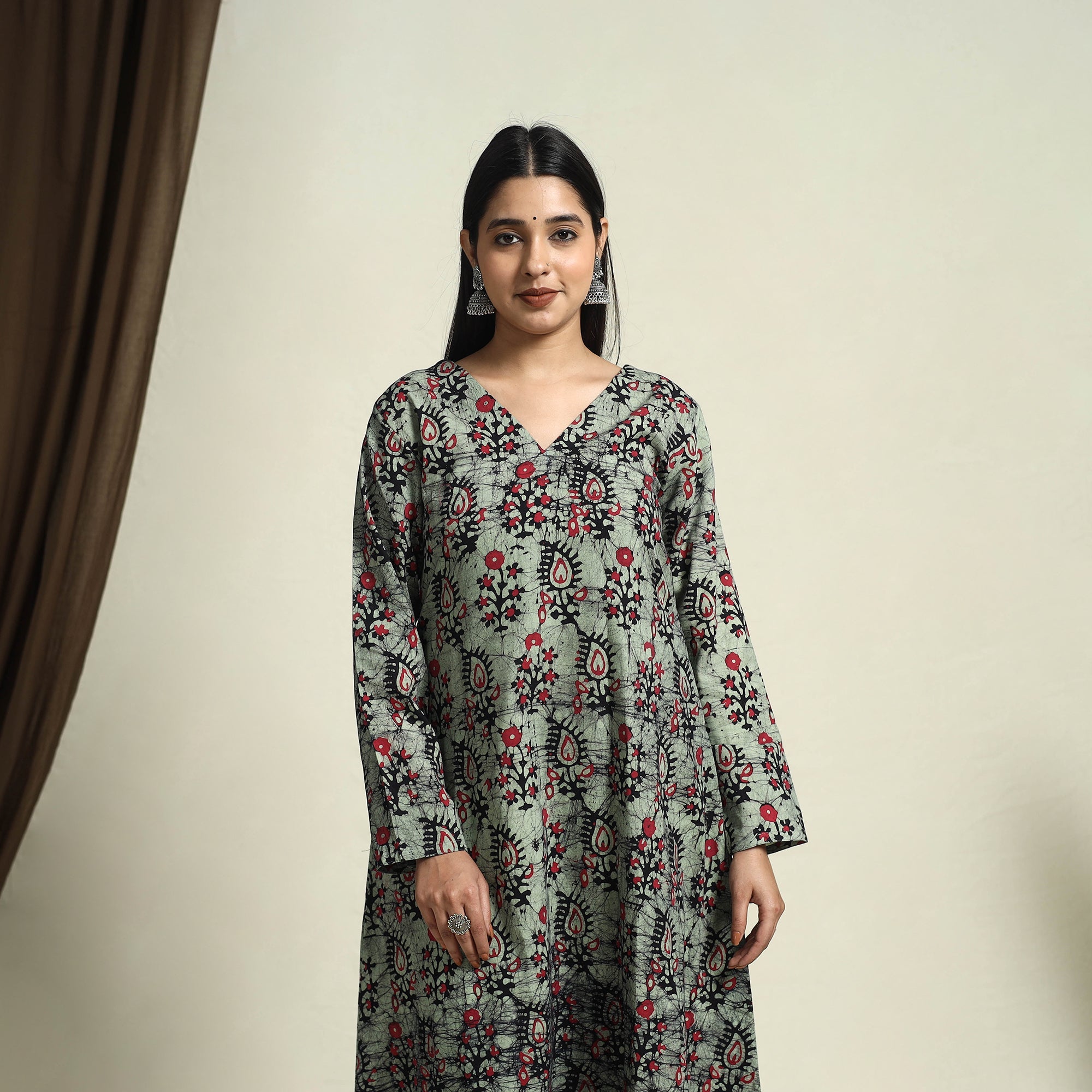 Celebrate heritage in style with this beautifully dyed A-line green batik kurta. The intricate resist-dye technique adds a rich cultural texture, while the breathable cotton keeps you feeling fresh through the day. With a pocket on one side and a flattering silhouette, this kurta effortlessly bridges tradition and modern comfort