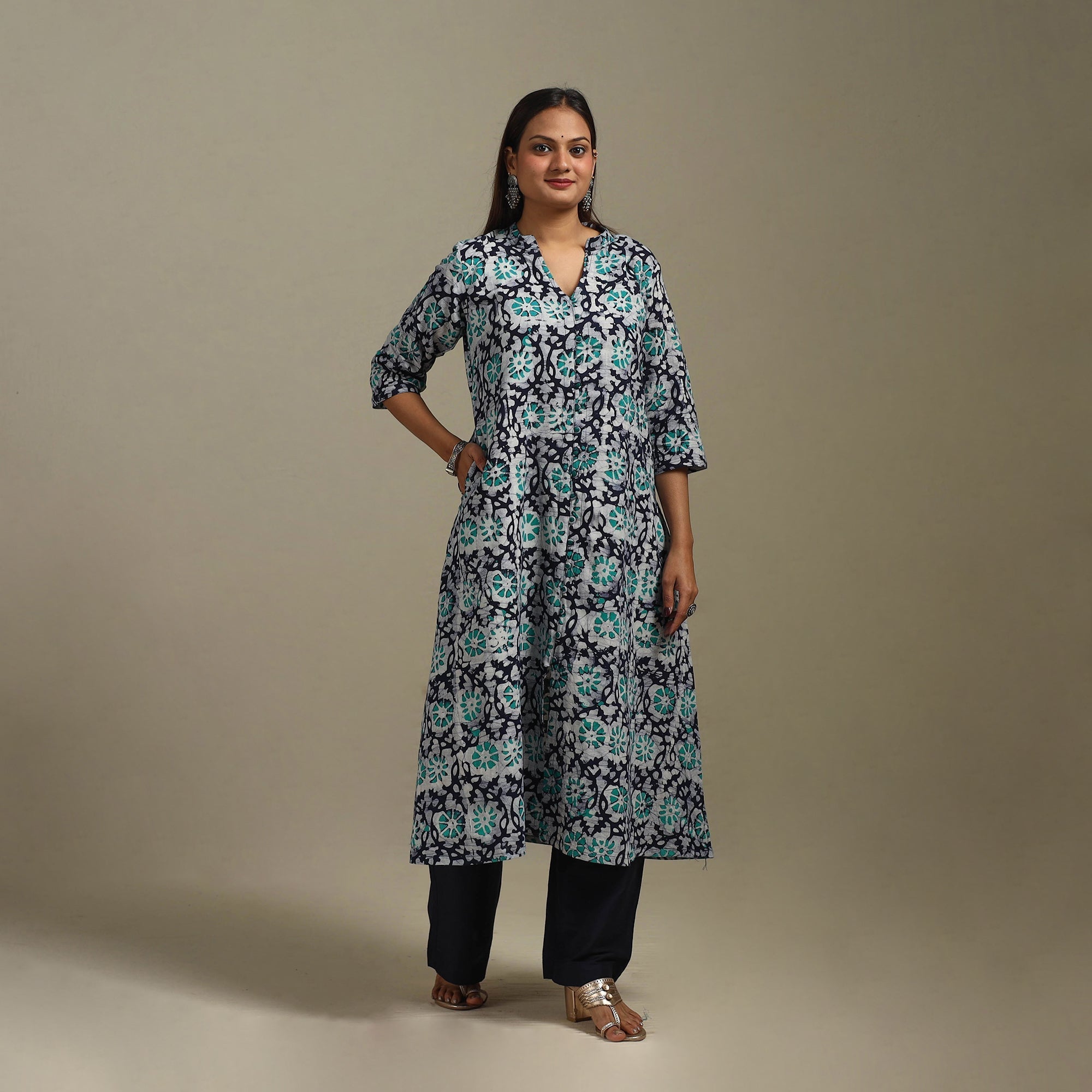 • A-line cotton hand batik kurta for women 19 - handcrafted