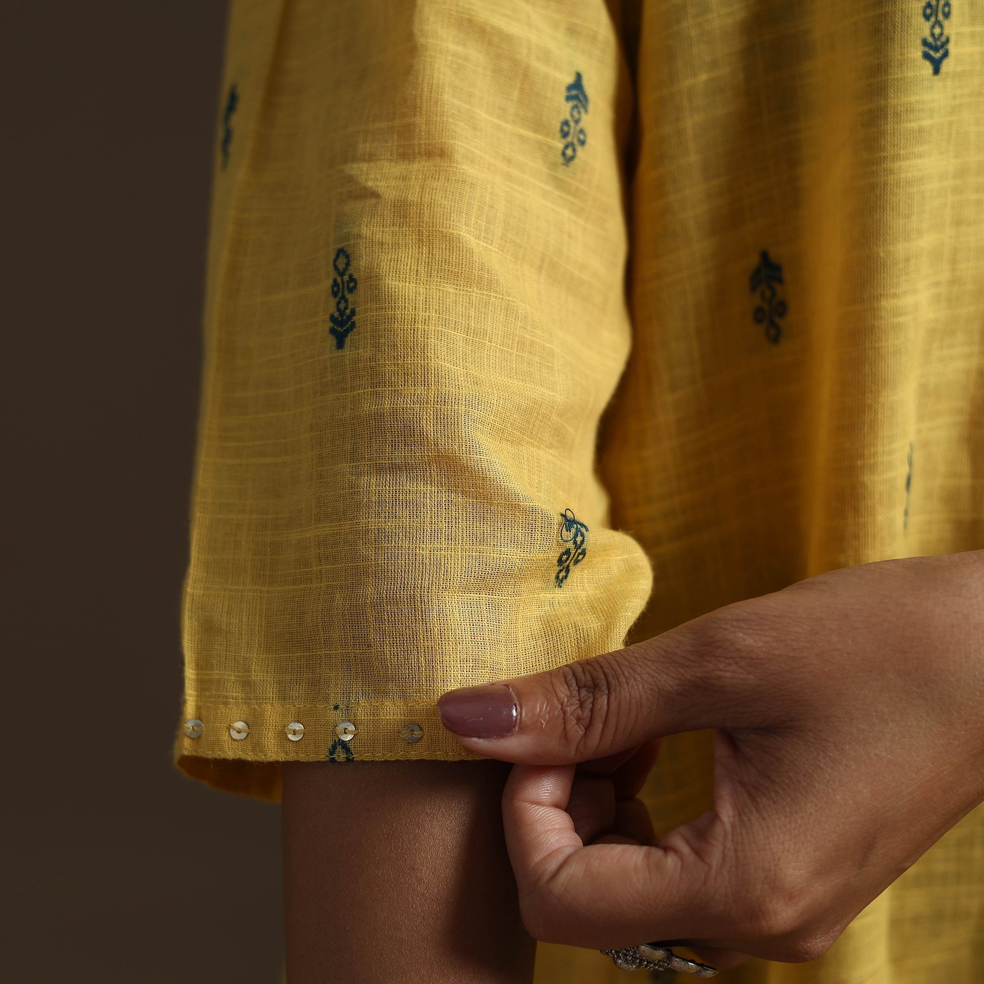 Stay stylish and comfortable in this A-line cotton hand embroidered jacquard kurta. The jacquard weave embeds patterns directly into the fabric, adding a soft texture you can both see and feel. Designed with a convenient side pocket for your essentials, this kurta is perfect for office wear or a relaxed day out.