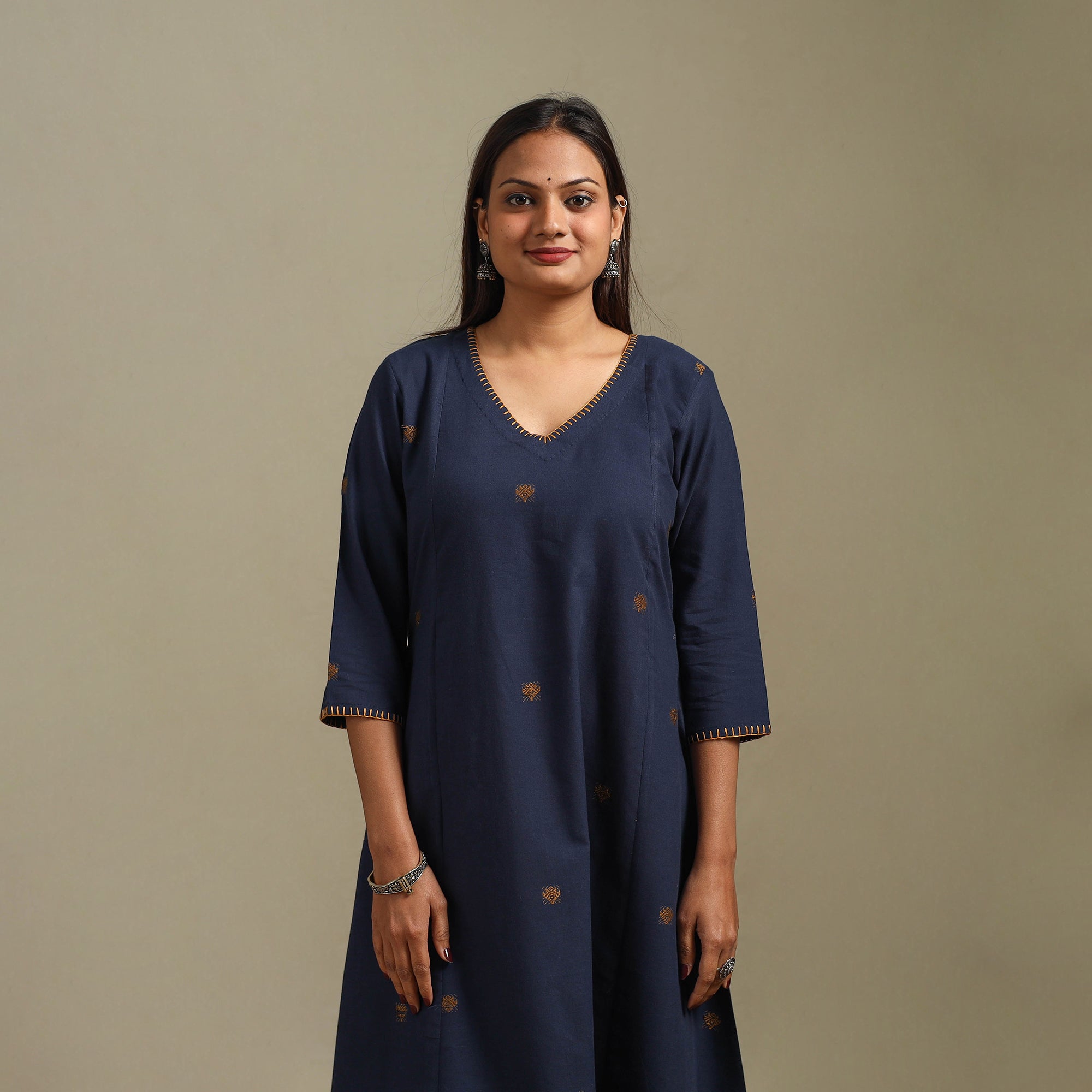 A-Line Cotton Hand Embroidered Jamdani Border Thread Buti Kurta for women 12