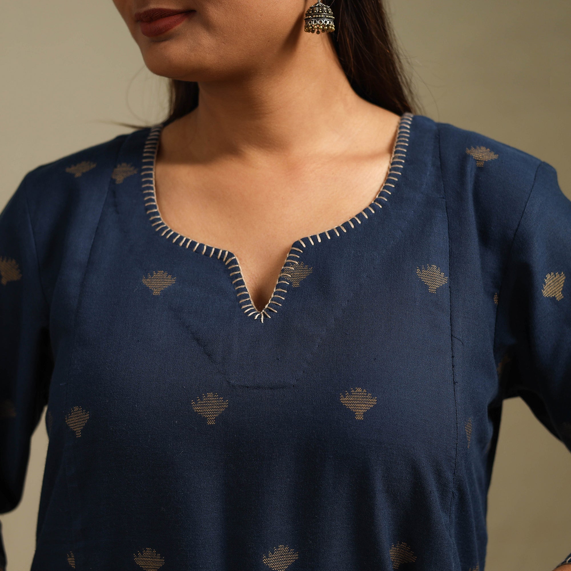 A-Line Cotton Hand Embroidered Jamdani Border Thread Buti Kurta for women 12
