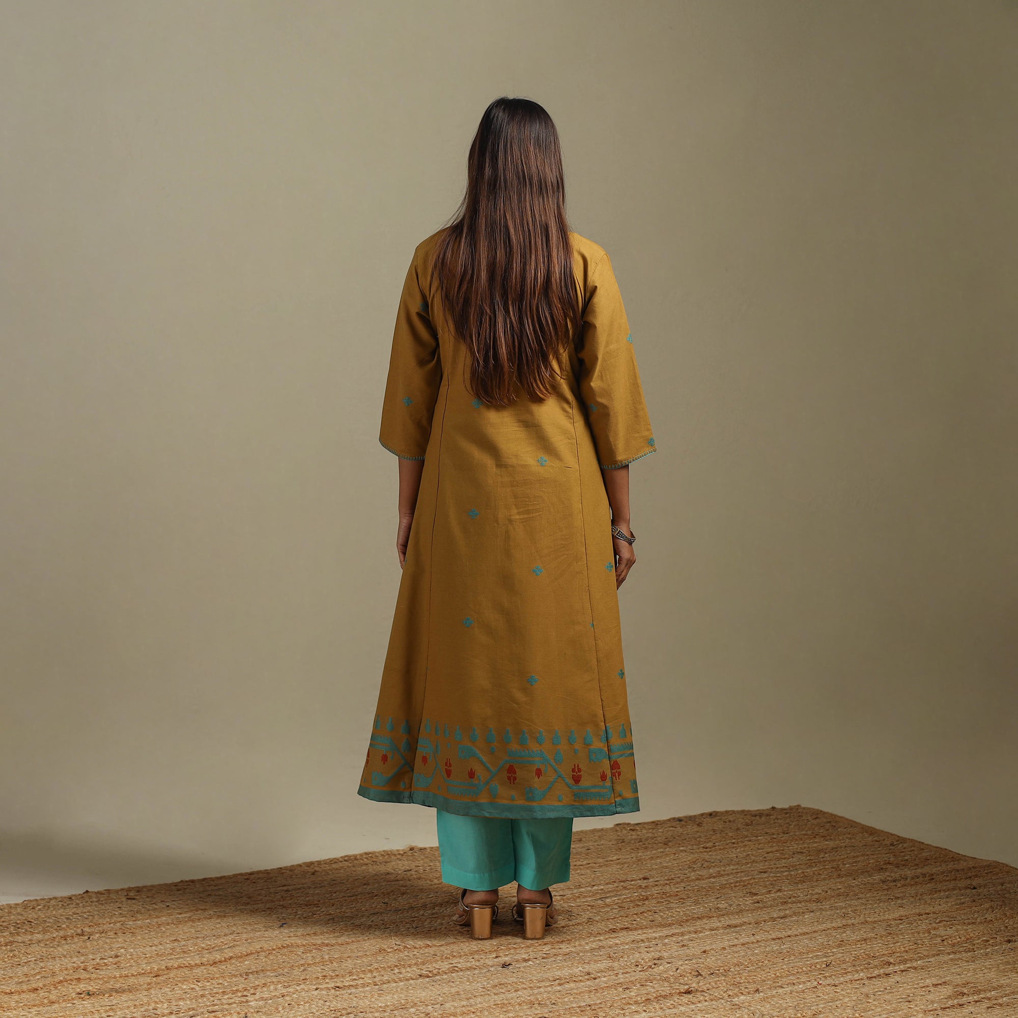 A-Line Cotton Hand Embroidered Jamdani Border Thread Buti Kurta for women 06