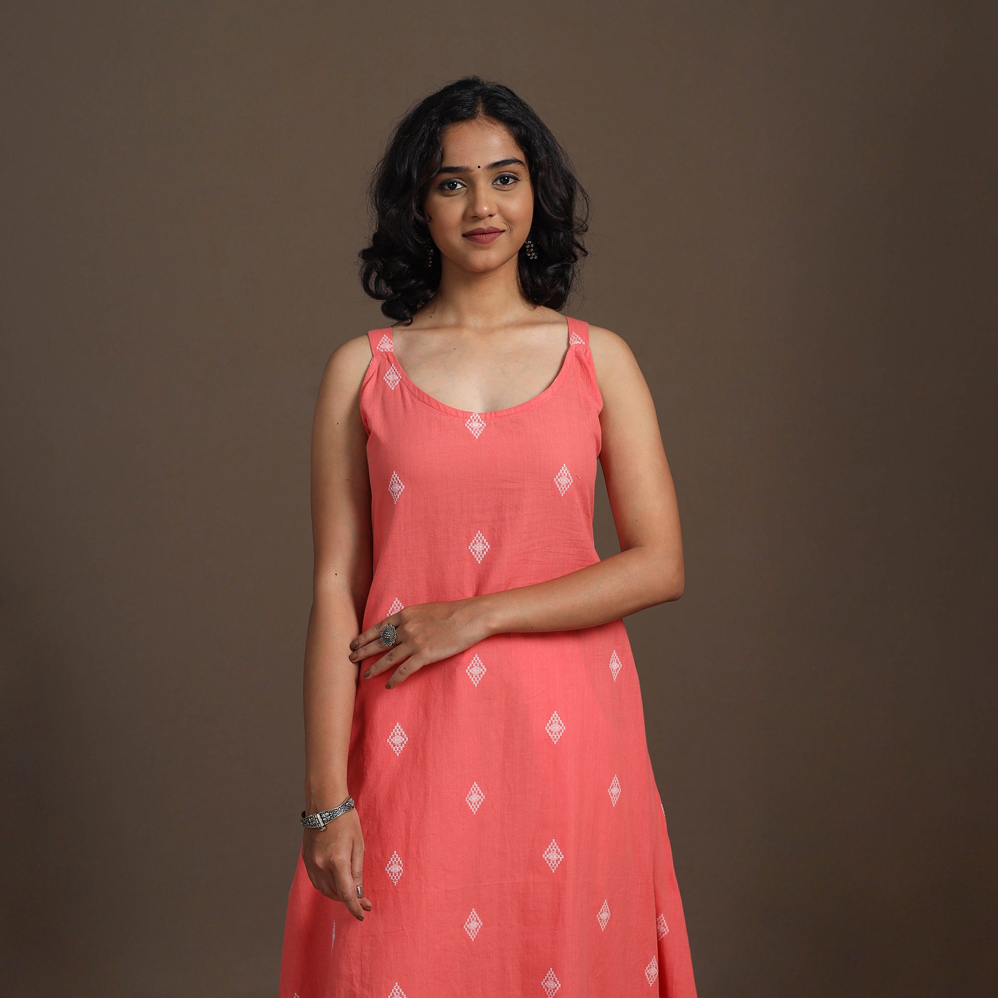 Elevate your everyday look with this A-line cotton sleeveless jacquard kurta, crafted for everyday elegance and practical ease. The jacquard technique intricately weaves patterns into the fabric, offering a soft, tactile feel. Made from breathable cotton, it ensures day-long comfort, even during busy workdays. A functional side pocket keeps essentials within reach, making it ideal for casual brunches or relaxed evenings out.