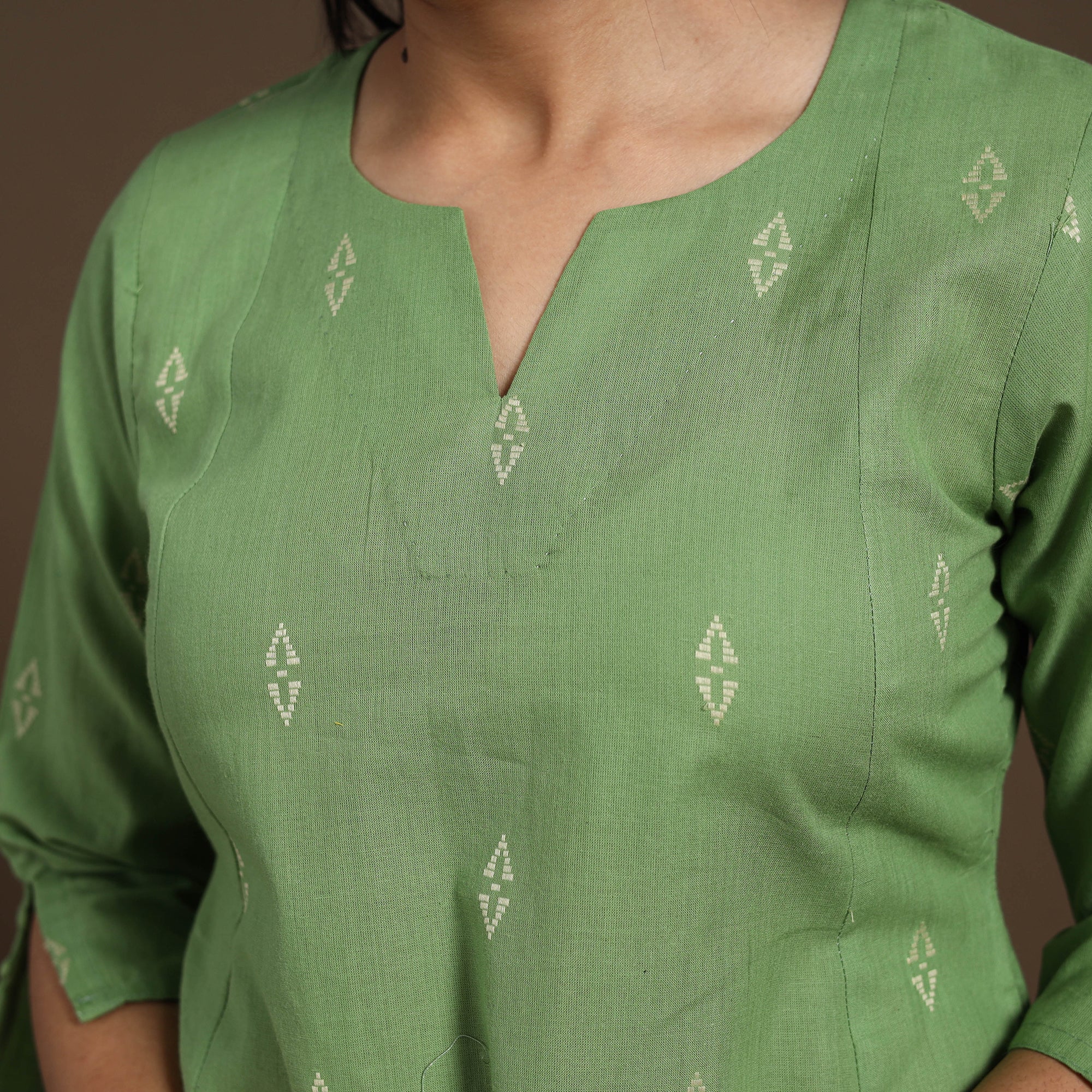 Step into comfort and style with this green a-line cotton jacquard kurta. The jacquard weave adds a soft, visible texture to the fabric, while breathable cotton keeps you comfortable all day. It also features a handy side pocket for your daily essentials. Whether it's for office hours, casual outings, or festive moments, this kurta is perfect for everyday wear.