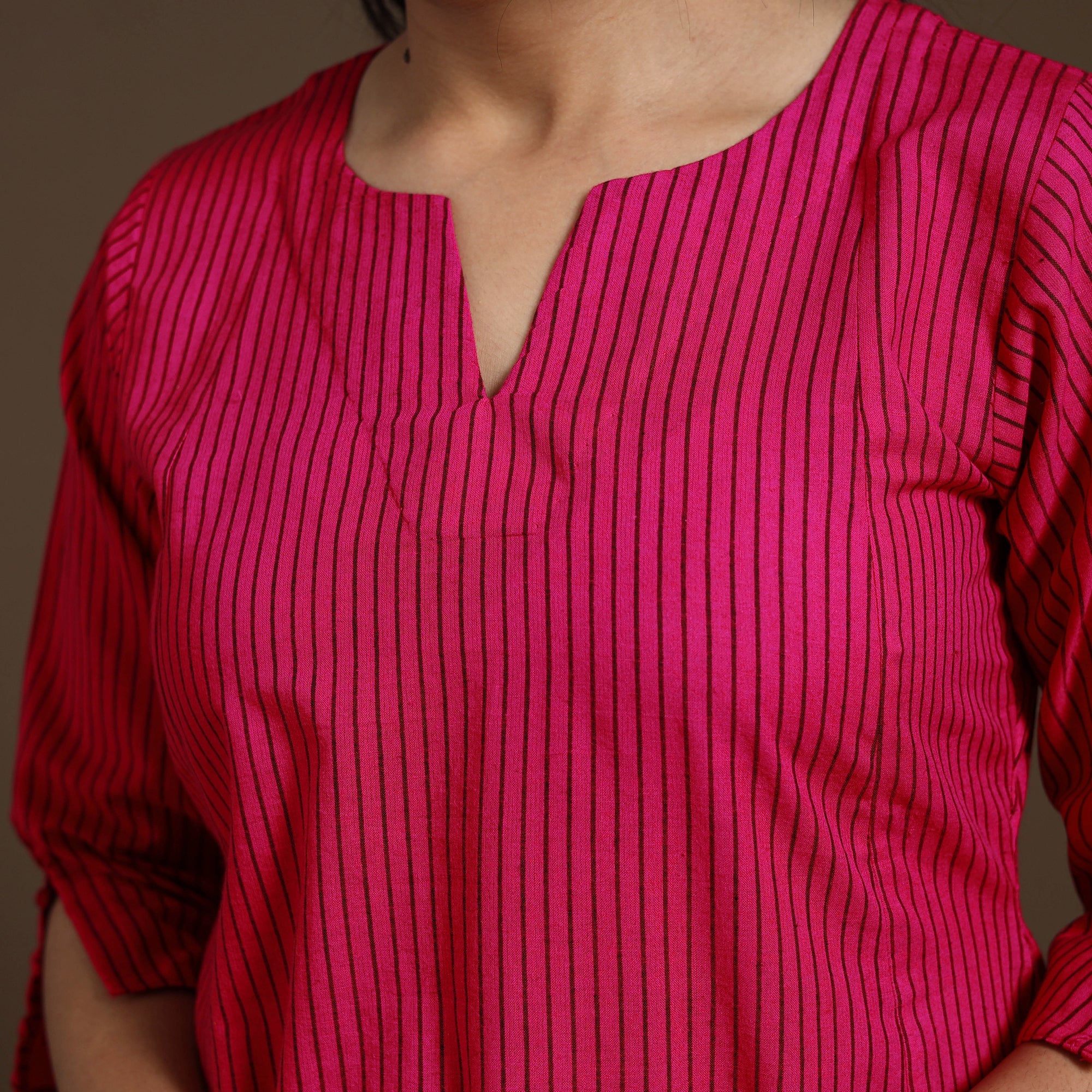 Step into comfort and style with this pink a-line cotton jacquard kurta. The jacquard weave adds a soft, visible texture to the fabric, while breathable cotton keeps you comfortable all day. It also features a handy side pocket for your daily essentials. Whether it's for office hours, casual outings, or festive moments, this kurta is perfect for everyday wear.