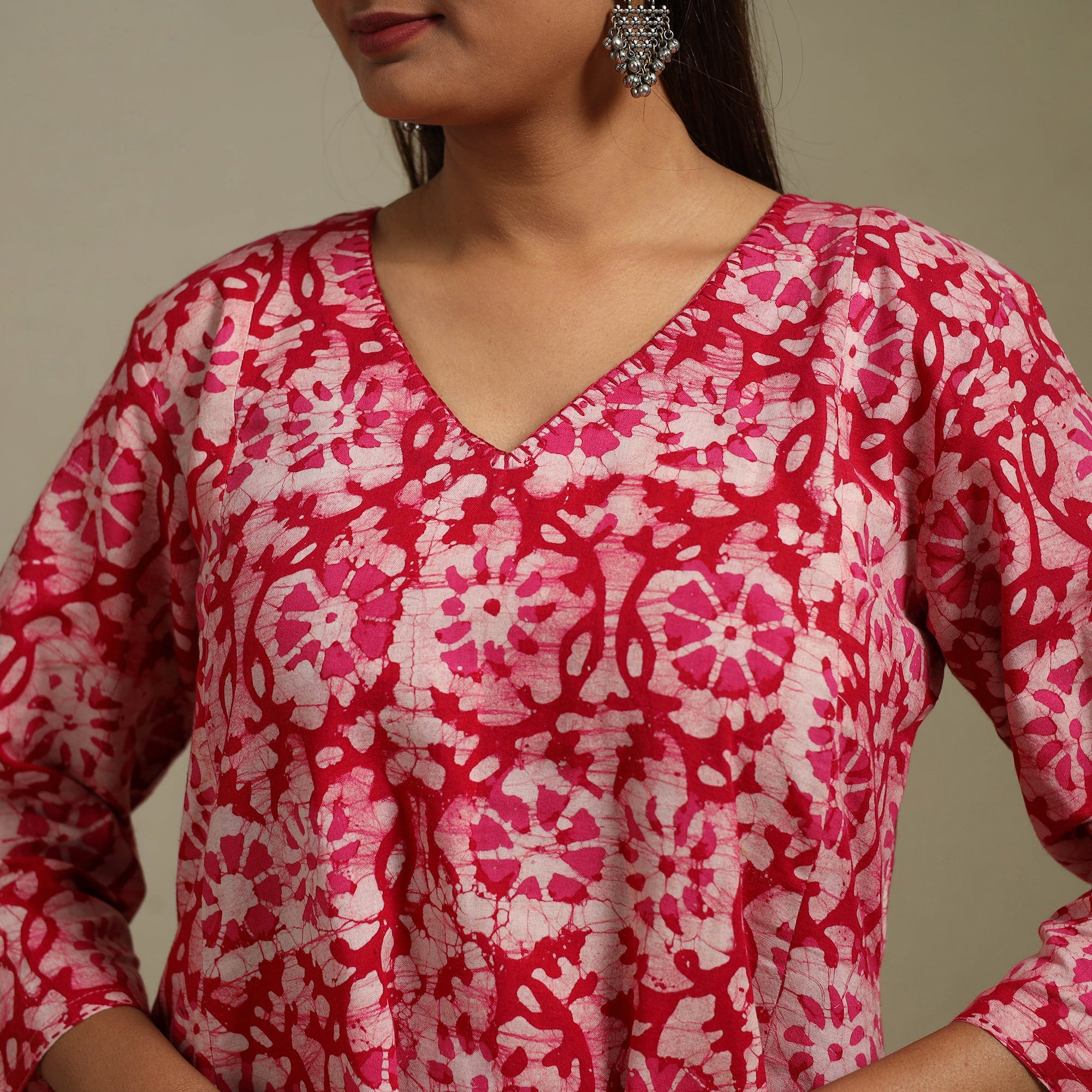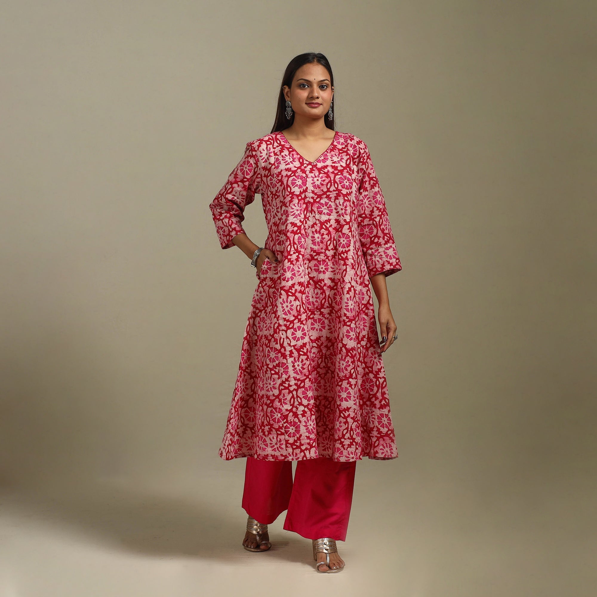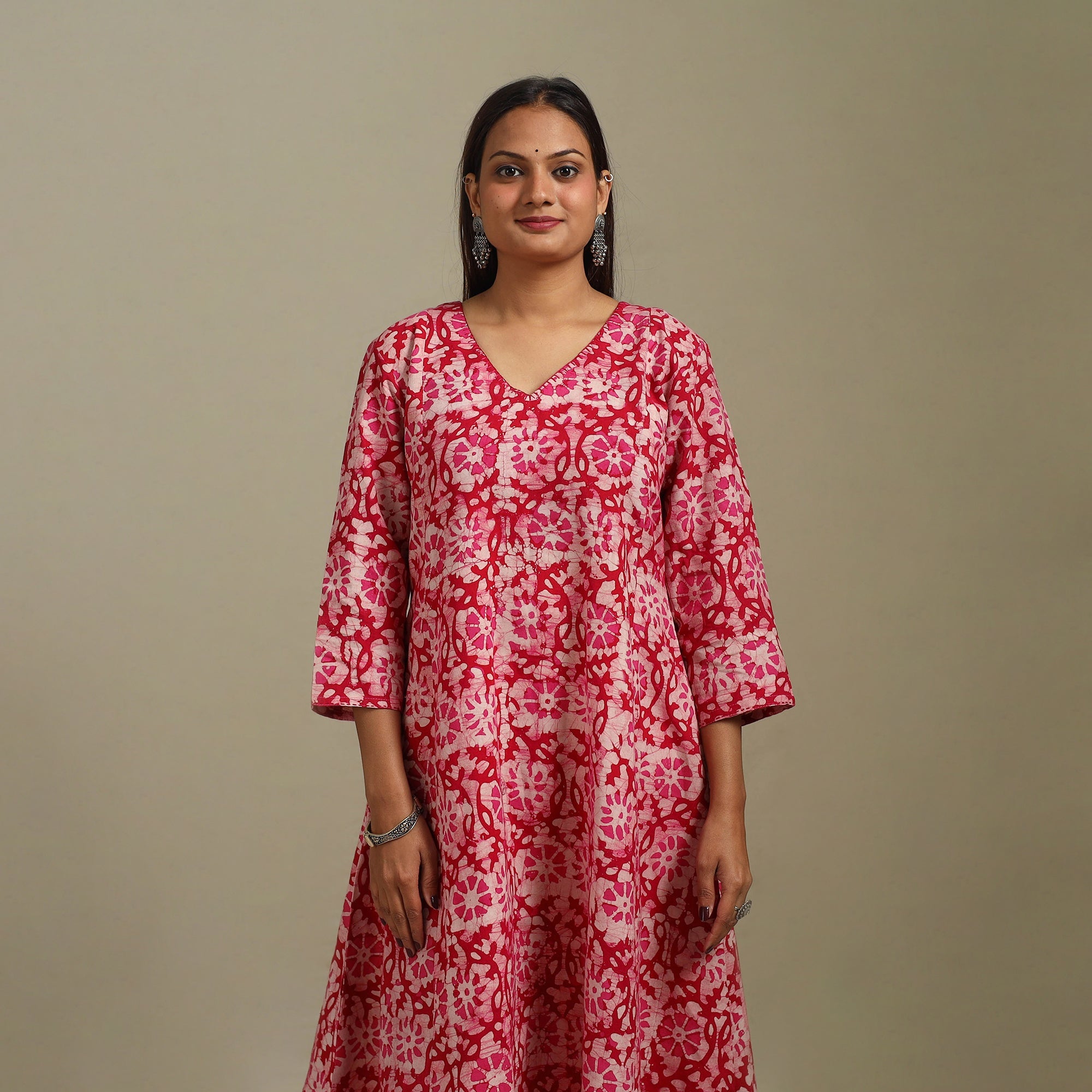 Hand embroidered batik print a-line kurta is a perfect mix of tradition and comfort. Created using an age-old wax-resist dyeing process, it features intricate, hand-applied batik block patterns. The breathable cotton fabric keeps you relaxed all day. With a comfortable fit and a side pocket, it’s great for casual outings, office or daily wear.