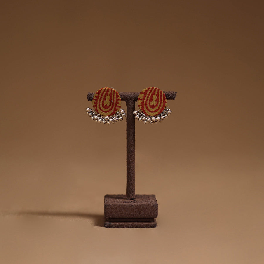 Handmade fabric earrings with ghungroo detailing enhances their charm. Perfect for everyday wear or special occasions, these earrings blend traditional style with a graceful touch.