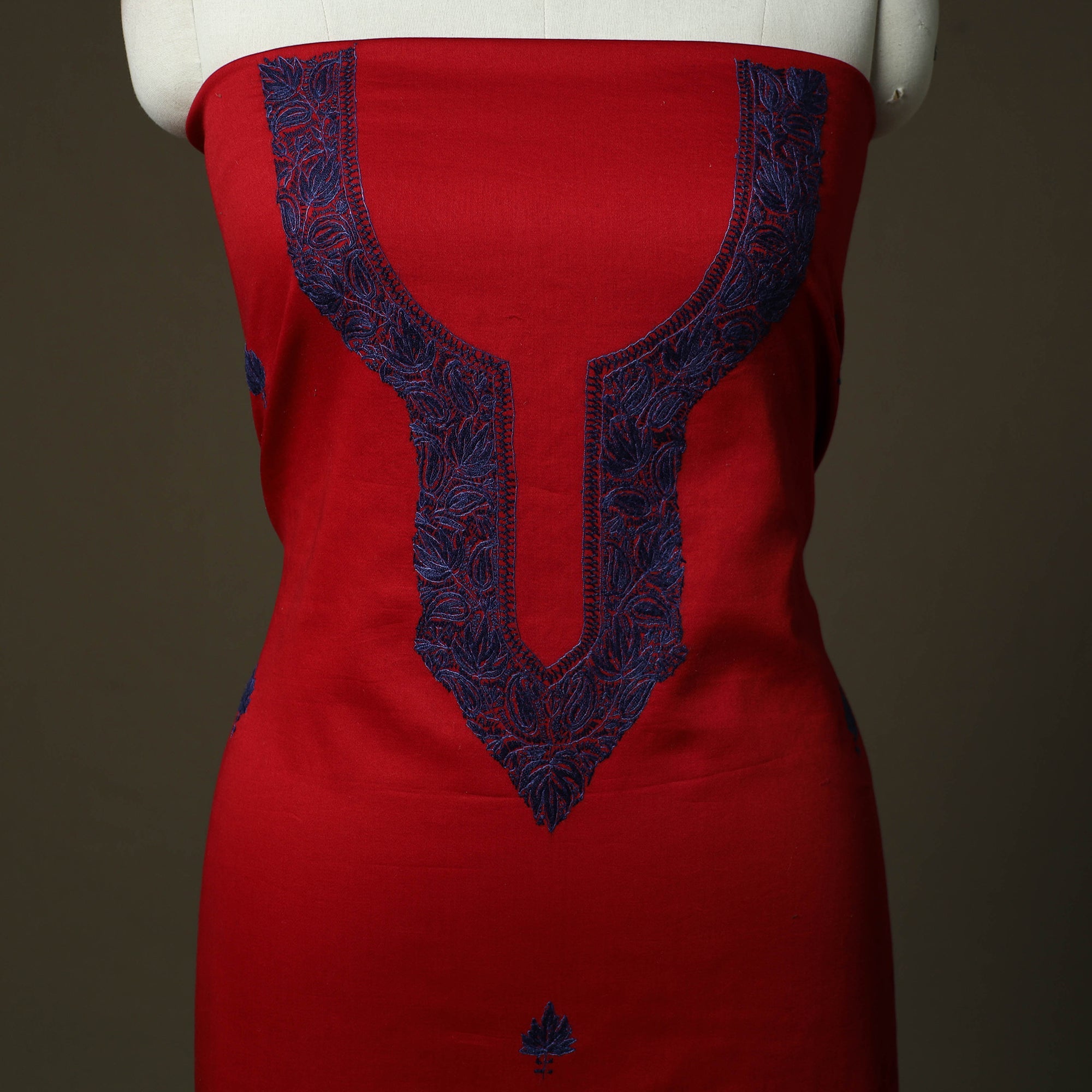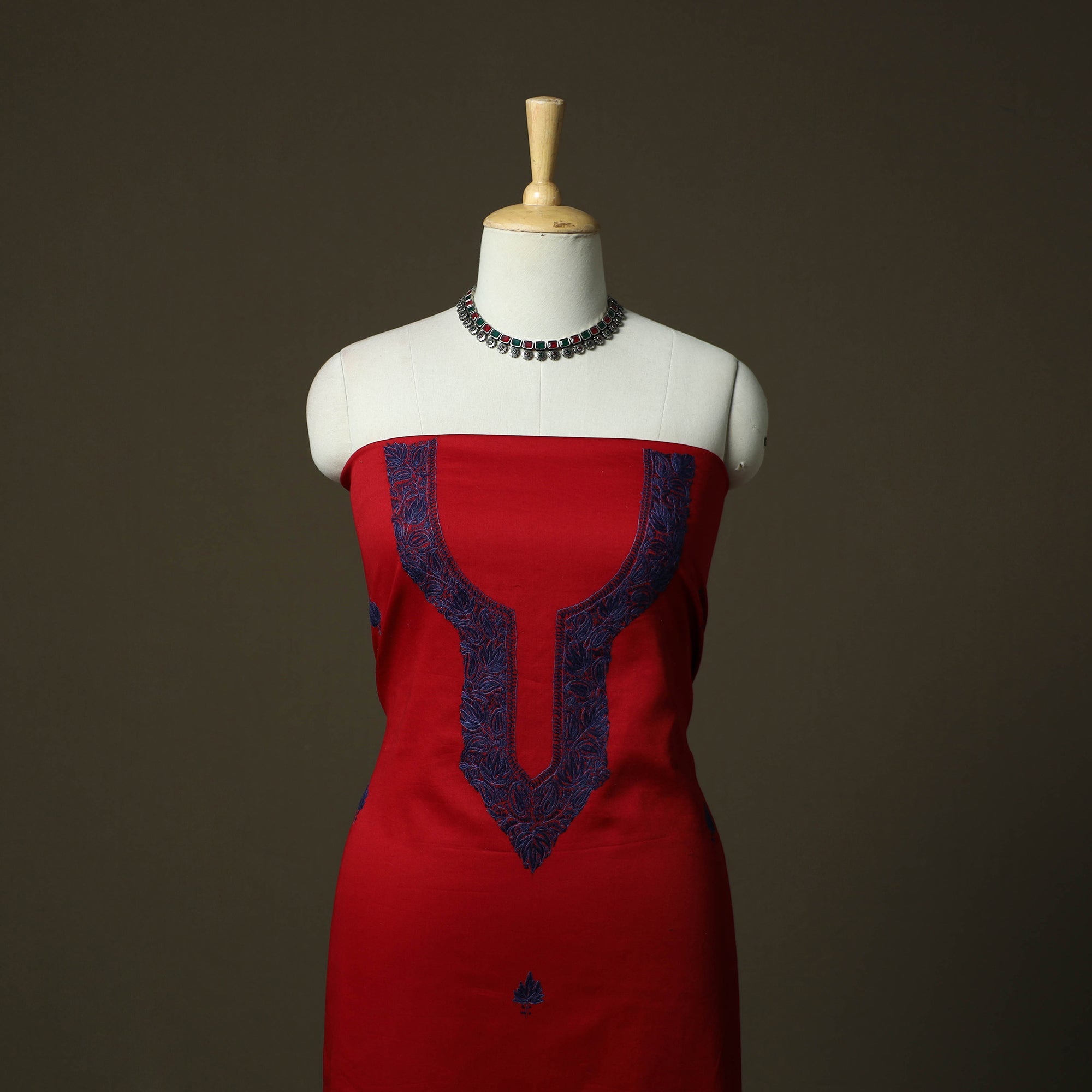 Aari hand embroidery cotton 2pc unstitched dress material is crafted by artisan Nakeeb, reflecting the kashmiri tradition that is around 800–900 years old. Known for its fine hook needle technique, Aari work creates detailed floral and traditional patterns with great precision. The set includes kurta fabric and bottom fabric, making it suitable for weddings, gatherings and cultural occasions.