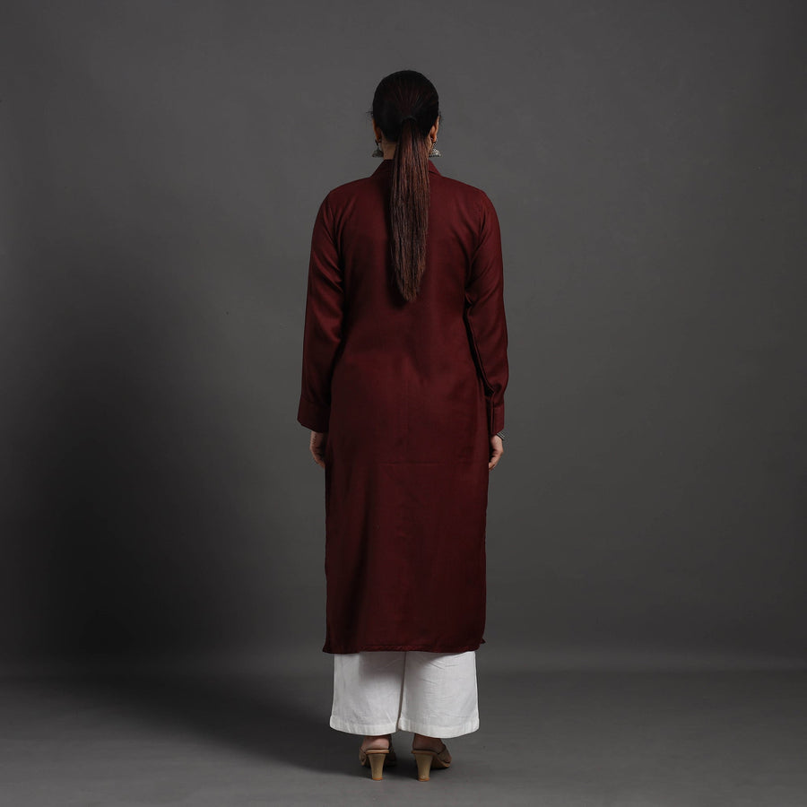 Stay warm and stylish with our elegant maroon plain merino woolen straight kurta, crafted for women's who value comfort and simplicity. Made from merino wool, this plain kurta offers unparalleled warmth and coziness. Featuring a convenient side pocket for your essentials, it’s both stylish and functional. Perfect for winter occasions or casual wear.