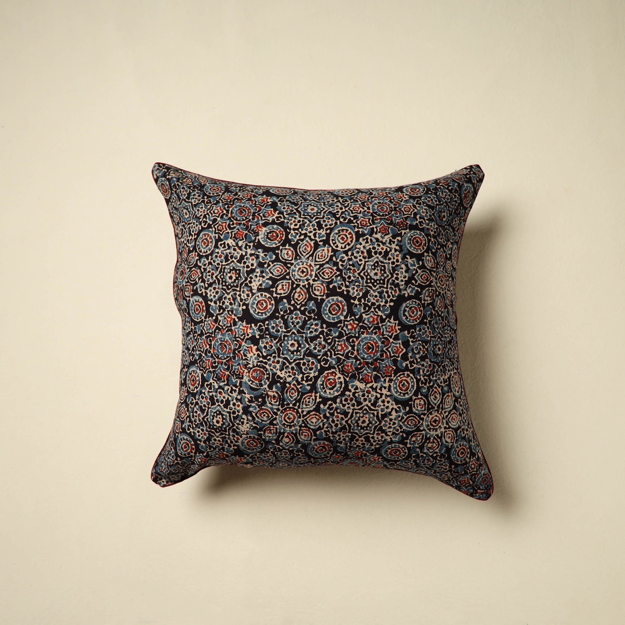 Add a touch of tradition to your space with this black ajrakh block-printed cushion cover. Reflecting the charm of age-old art, it's crafted from soft cotton to bring both comfort and culture to your home. Perfect for sofas, chairs, or beds.