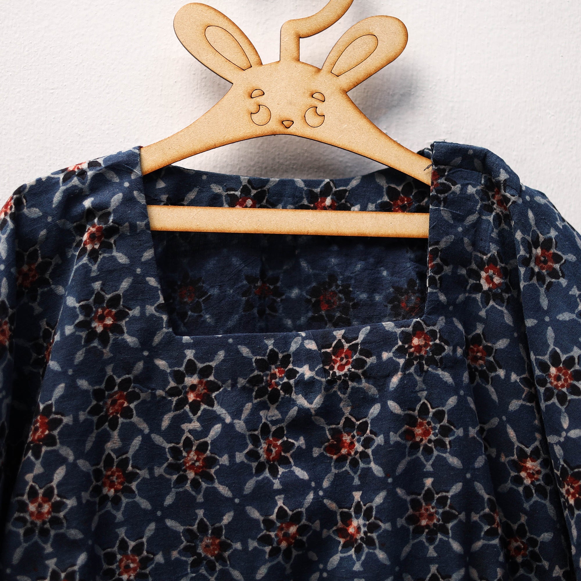 Blue - Ajrakh Block Print Cotton Kids Kaftan (3-4 Years) 07