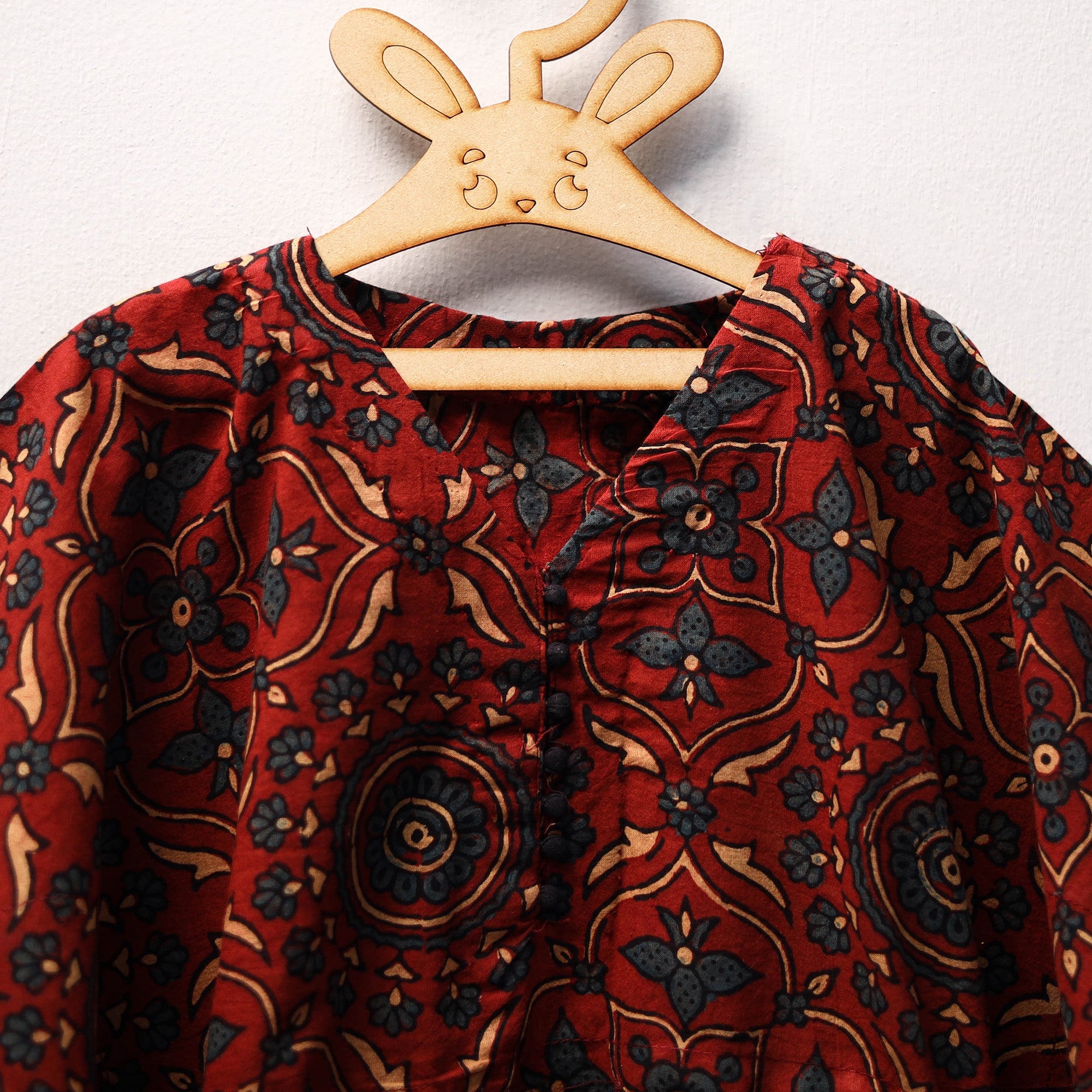 Red - Ajrakh Block Print Cotton Kids Kaftan (3-4 Years) 09